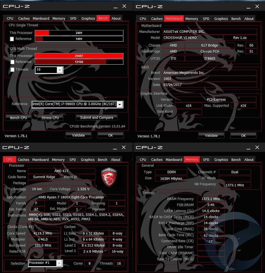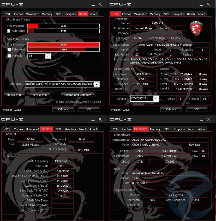Учитывая базовые частоты Ryzen 7 1800x, добиться чего-то неожиданного и сверхъестественного не получилось. Двухранговая оперативная память с микросхемами SK Hynix ситуацию несколько усугубила. Если процессор был абсолютно стабилен на частоте 4000 МГц при установленном напряжении 1.48В, то разгон оперативной памяти назвать удачным нельзя — удалось добиться только частоты 2666 МГц при таймингах 14-14-14-28 CR1. Попытки выставить большую частоту приводили к циклическому выключению и включению компьютера со сбросом настроек на заводские. Это стоит списать на недоработанностьBIOS материнских плат, потому что проблемы совместимости с оперативной памятью обещали исправить в будущих версиях микрокода.