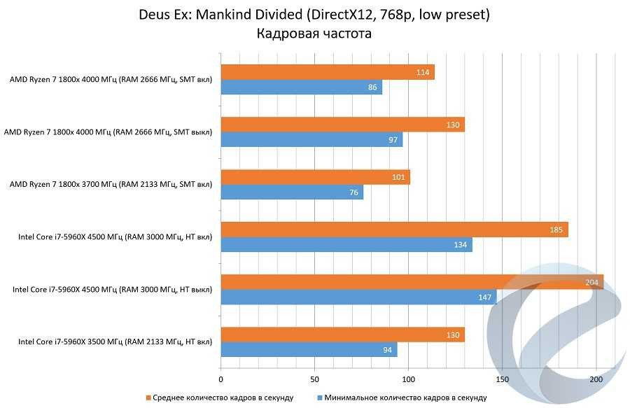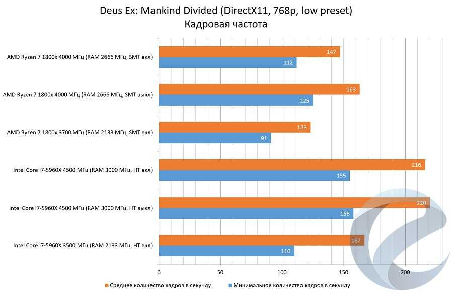 Полученный результат заставил изучить влияние настроек игры на количество кадров в секунду. Оказалось, что настройка «Дополнительно», относящаяся к параметрам геометрии, оказывает сильное влияние на системе с 1800x. На системе с i7-5960x падение производительности гораздо меньшее.