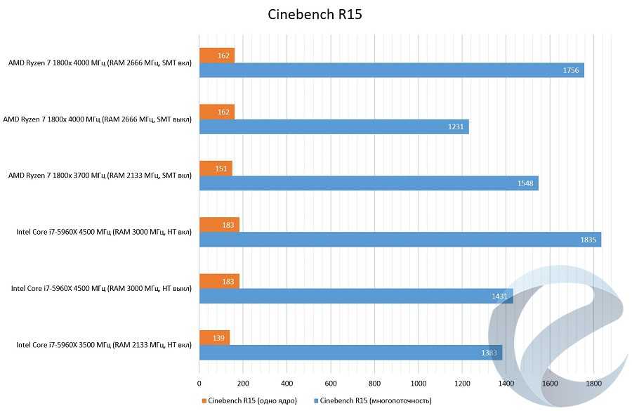 Отдельно бы хотелось отметить реализацию технологии SMT. Судя по результатам, полученным в Cinebench R15, эффективность данной технологии превосходит Intel HT.