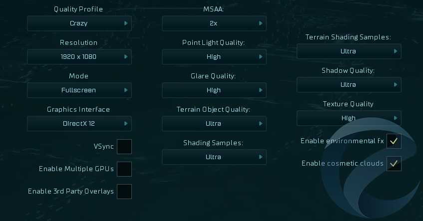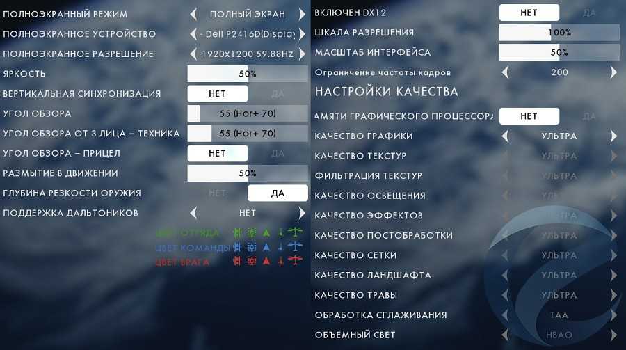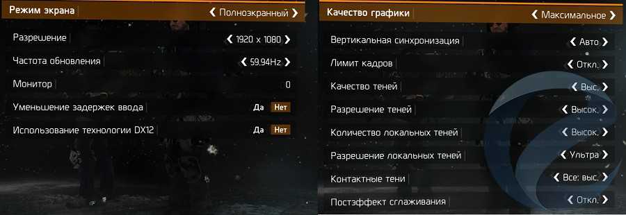 Графические настройки: