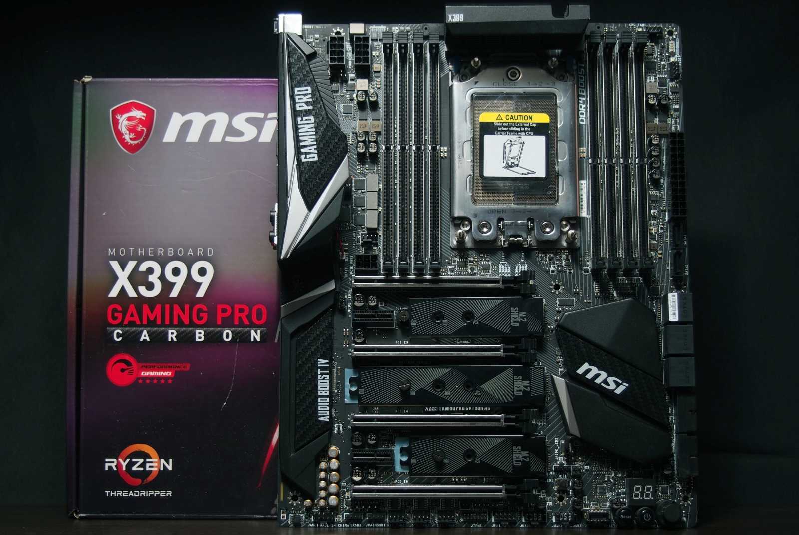 С уже существующими же моделями материнских плат, как и с нашей тестовой MSI X399 Gaming Pro Carbon AC, производители лишь добавили поддержку новых процессоров обновлением прошивки BIOS. Это обеспечило возможность установки новых CPU в уже существующие материнские платы, но не во все без исключения. Например, компания ASRock до сих пор не выпустила новую модель материнской платы, оптимизированную под новые 24-ядерные и 32-ядерные Ryzen Threadripper. Более того, некоторые продукты этой компании, такие как ASRosk X399 Phantom Gaming 6 даже на уровне BIOS не поддерживают процессоры Ryzen Threadripper с TDP более 180 Вт.