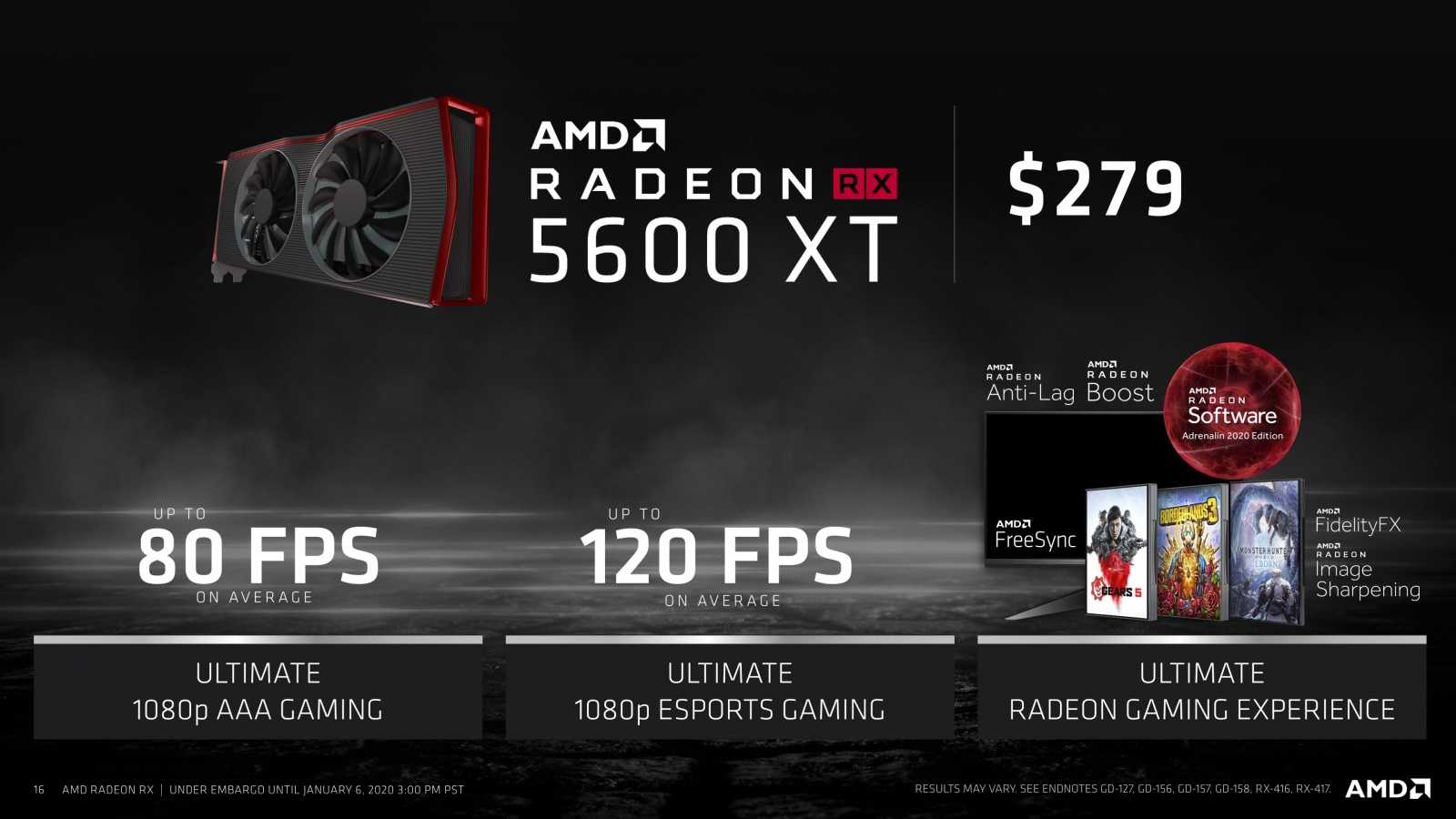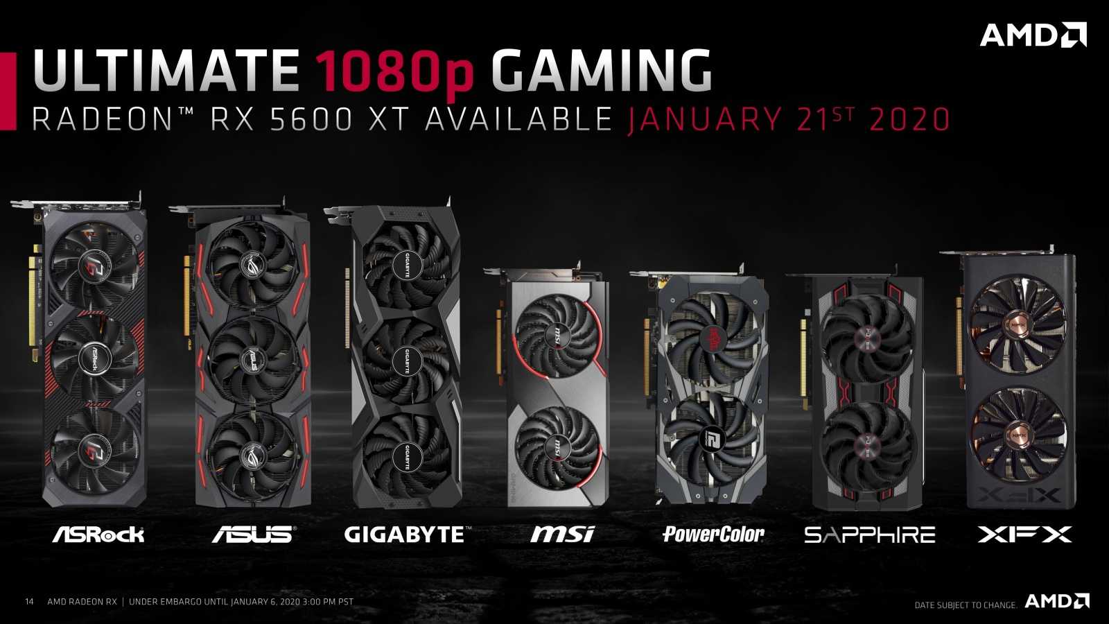 С этой целью AMD сейчас выпускает третье подсемейство Radeon RX 5000 — это Radeon RX 5600, которые появится в продаже с 21 января 2020 года. Модель RX 5600 XT анонсирована с рекомендованной розничной ценой $279.