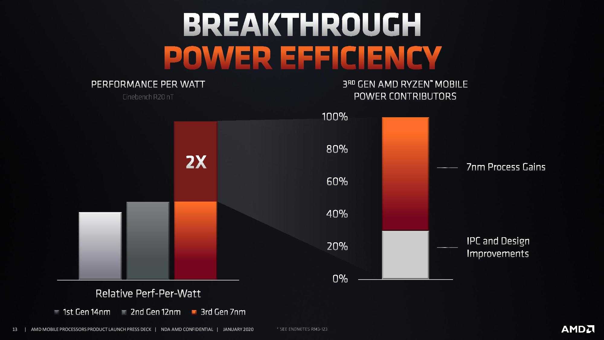 C уменьшением техпроцесса микросхема становится компактнее, что означает уменьшение энергопотребления и/или увеличение быстродействия. Относительная производительность CPU на ватт выросла в два раза по сравнению с предыдущим поколением Ryzen 3000.