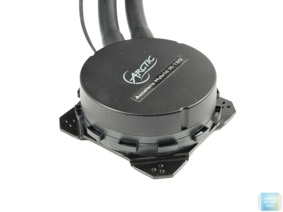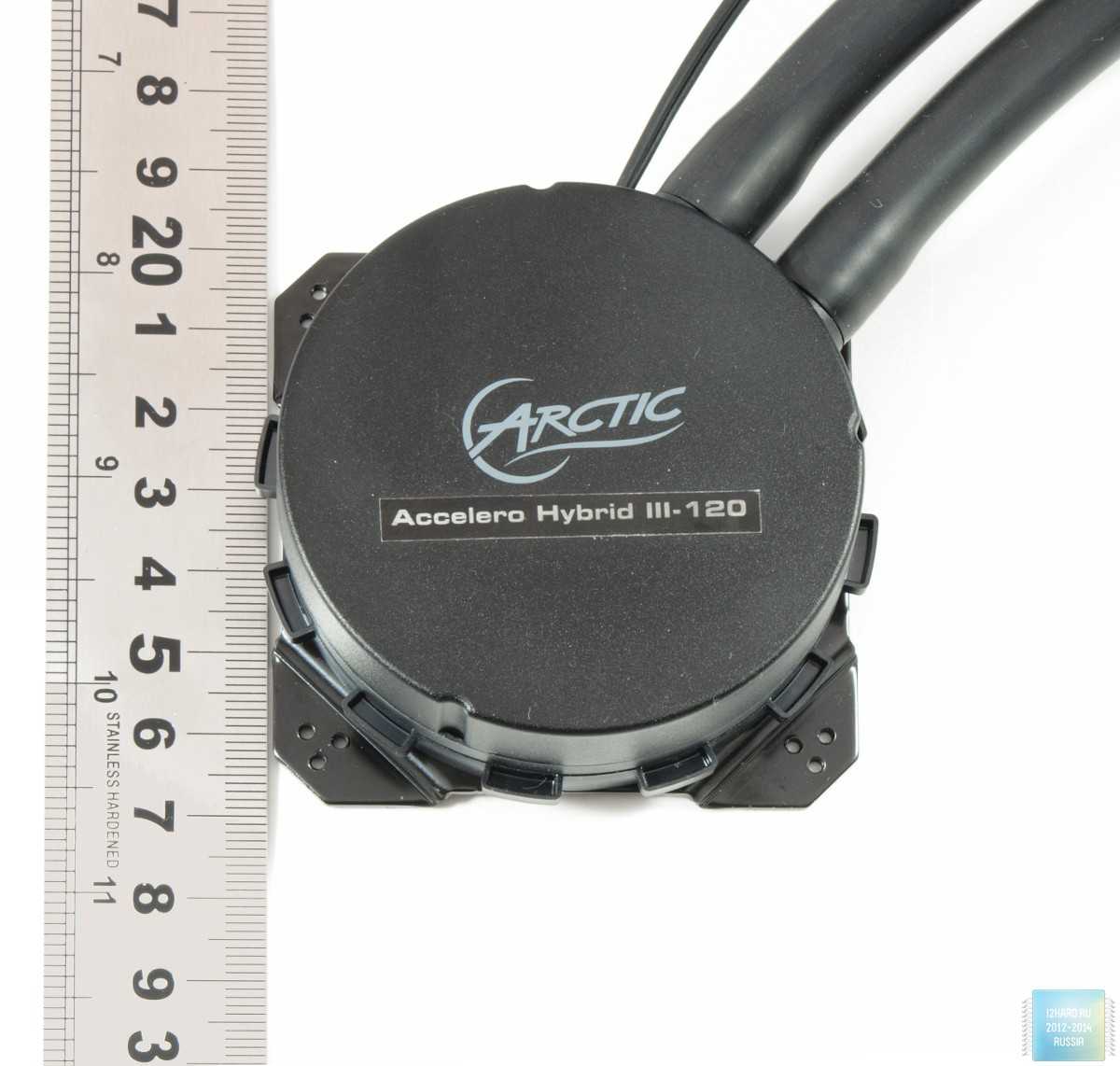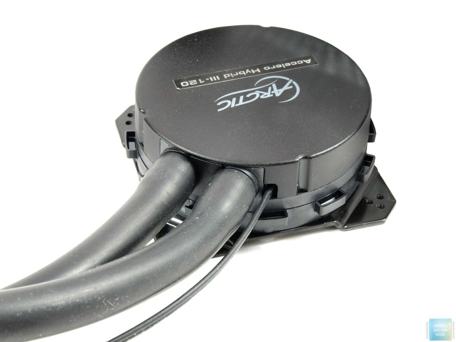 Система охлаждения Arctic Accelero Hybrid III-120 представляет собой классическую необслуживаемую систему охлаждения, где помпа совмещена с водоблоком и соединена с односекционным радиатором типоразмера 120 мм. Длина гибких резиновых шлангов составляет впечатляющие 420 мм, что позволит установить СВО в любом участке корпуса.