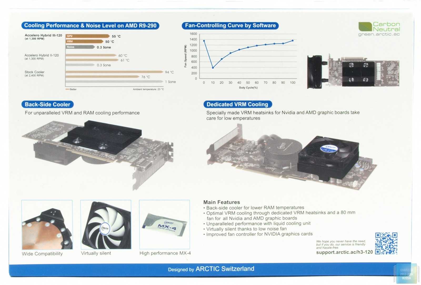 Система охлаждения Arctic Accelero Hybrid III-120 легко и непринужденно «справилась» с видеокартой Radeon R9290X, не оставив и шанса высокому нагреву. Разработчики постарались исправить недостатки прошлой серии и оснастили СВО радиатором подсистемы питания, установили дополнительный вентилятор для обдува VRM, настроили на сбалансированную парную работу все элементы. Хочется найти существенный недостаток, но его нет. Единственная придирка заключается в отсутствующих пока радиатора для микросхем видеопамяти, однако, учитывая исправление собственных ошибок, ожидаем в обозримом будущем новую линейку СВО, где замечания свелись на нет.