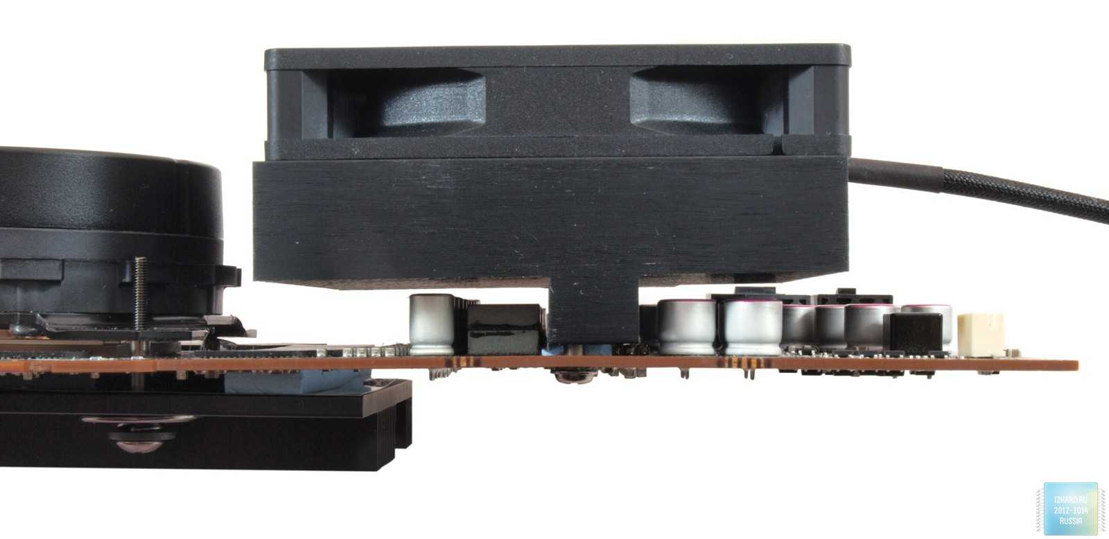 Наконец-то разработчики начинают осознавать, что стоит задумываться об охлаждении не только графического процессора, но и подсистемы питания и начинают все меньше экономить на этой важной части.При виде сбоку понимаешь какой радиатор VRM получился большим, в сравнении с предлагаемым ранее Gelid Solutions AMD R290 290X Enhancement Kit последний и вовсе теряется, а если учесть, что у модели Arctic имеется и вентилятор, то о покупке Gelid можно и вовсе забыть
