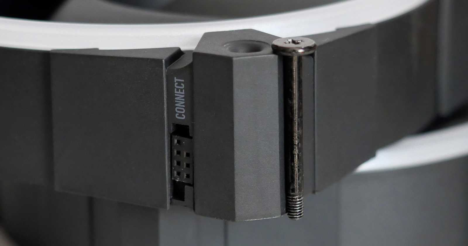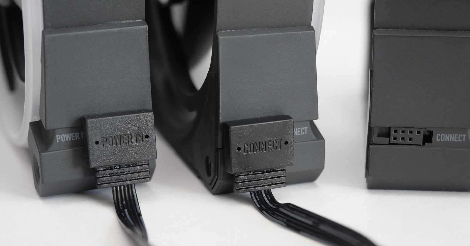 Разъёмы буквально на миллиметр утоплены относительно выступающих граней корпуса, поэтому при использовании комплектных штырьковых соединителей между вентиляторами практически не остаётся зазора.