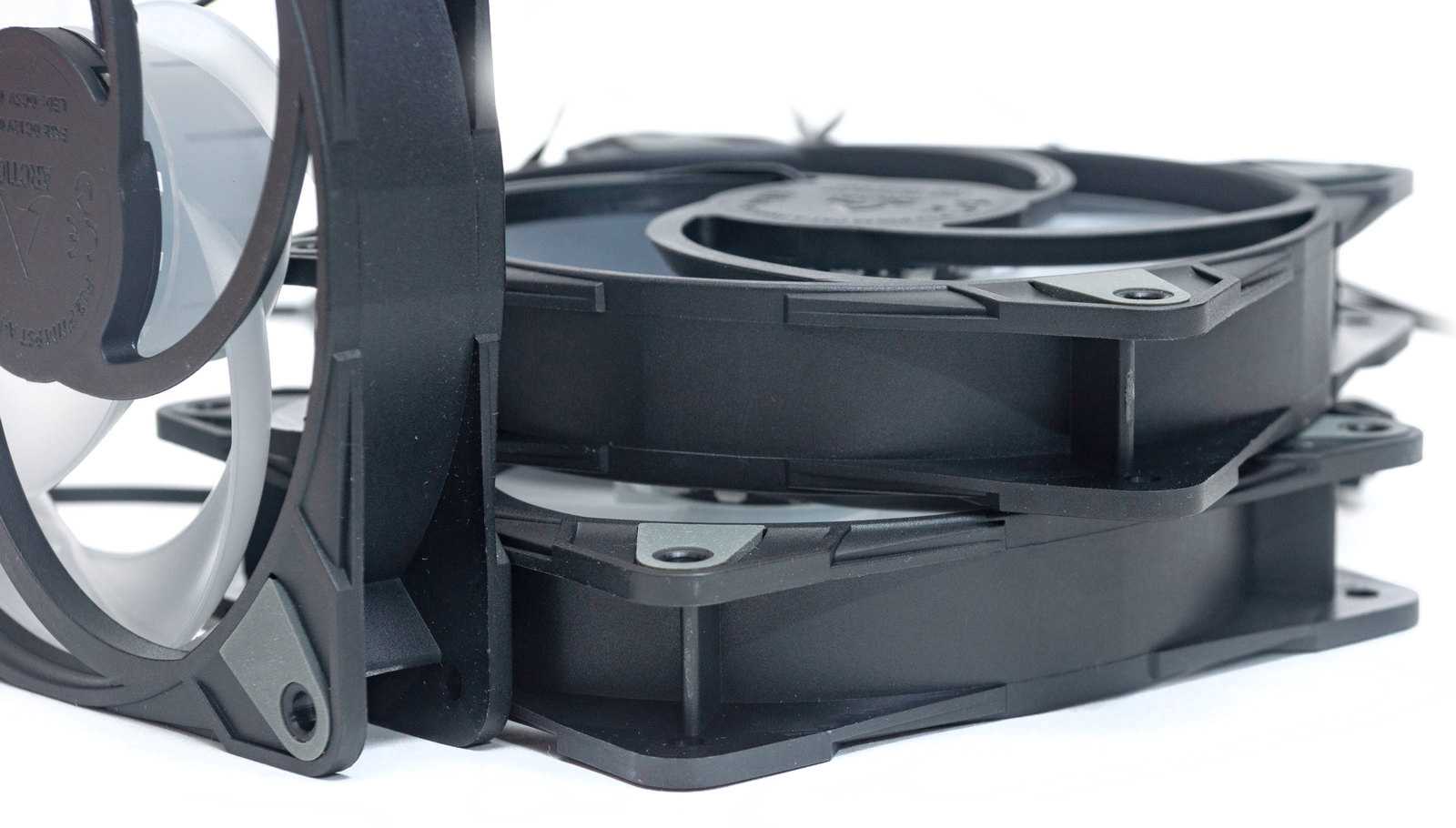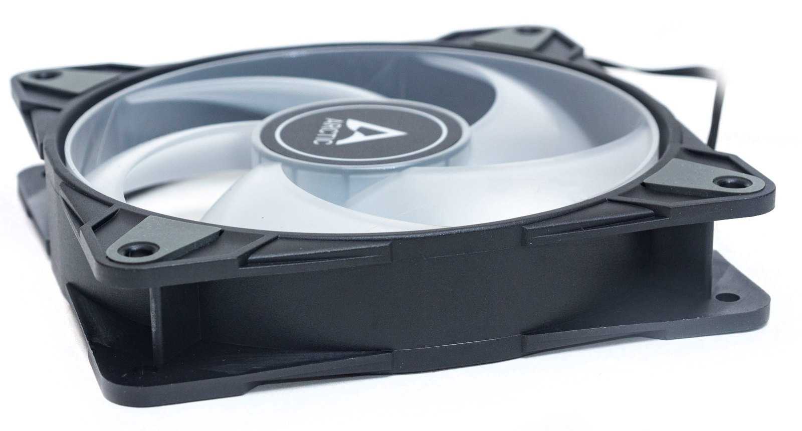 Крыльчатка вентилятора из пяти широких лопастей, закрученных по большому радиусу. С внешней стороны лопасти объедены цилиндрической кольцевой рамкой. Такая конструкция лопастей практически не встречается в корпусных вентиляторах. По заверению производителя это дает более фокусированный воздушный поток. Но как это повлияет на эксплуатационные характеристики, пока непонятно.
