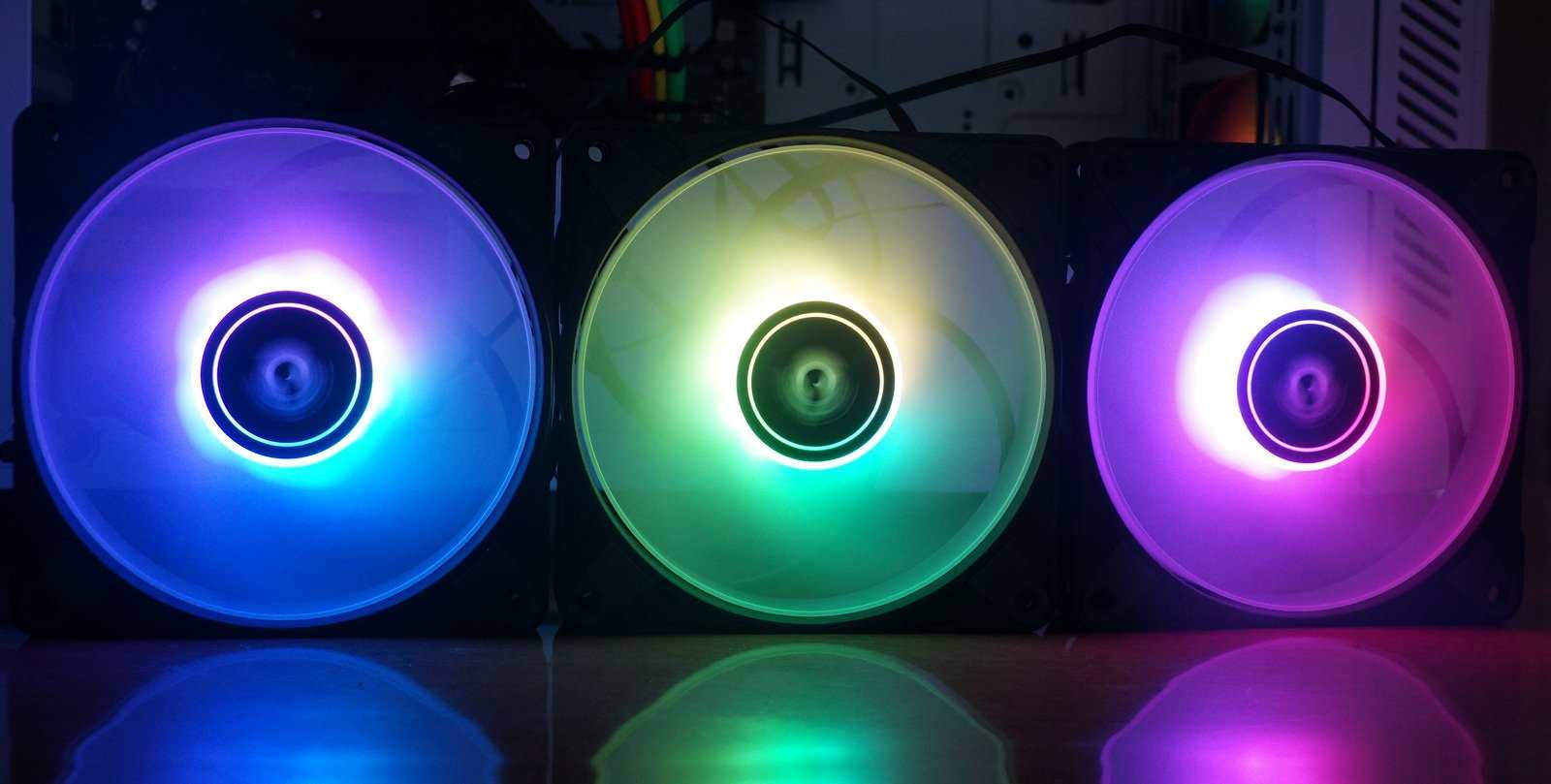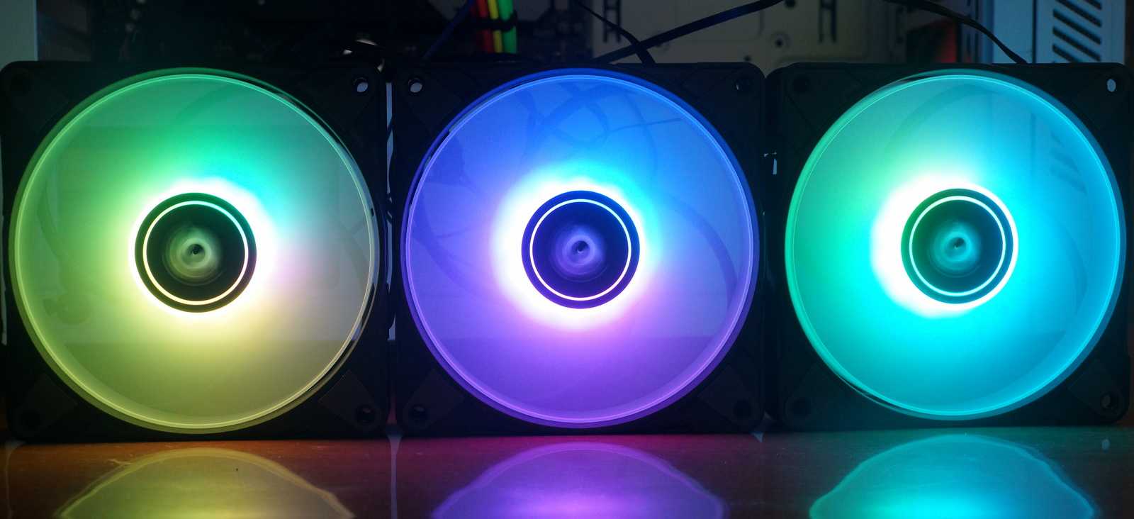 Как хорошо видно по фотографиям, синхронизация между вентиляторами, подключенными последовательно, работает на этой плате некорректно. С этим мы столкнулись и при тестировании других вентиляторов с подсветкой ARGB. Подключившись к контроллеру корпуса мы получили четко синхронизированную смену цветов между всеми вентиляторами комплекта.