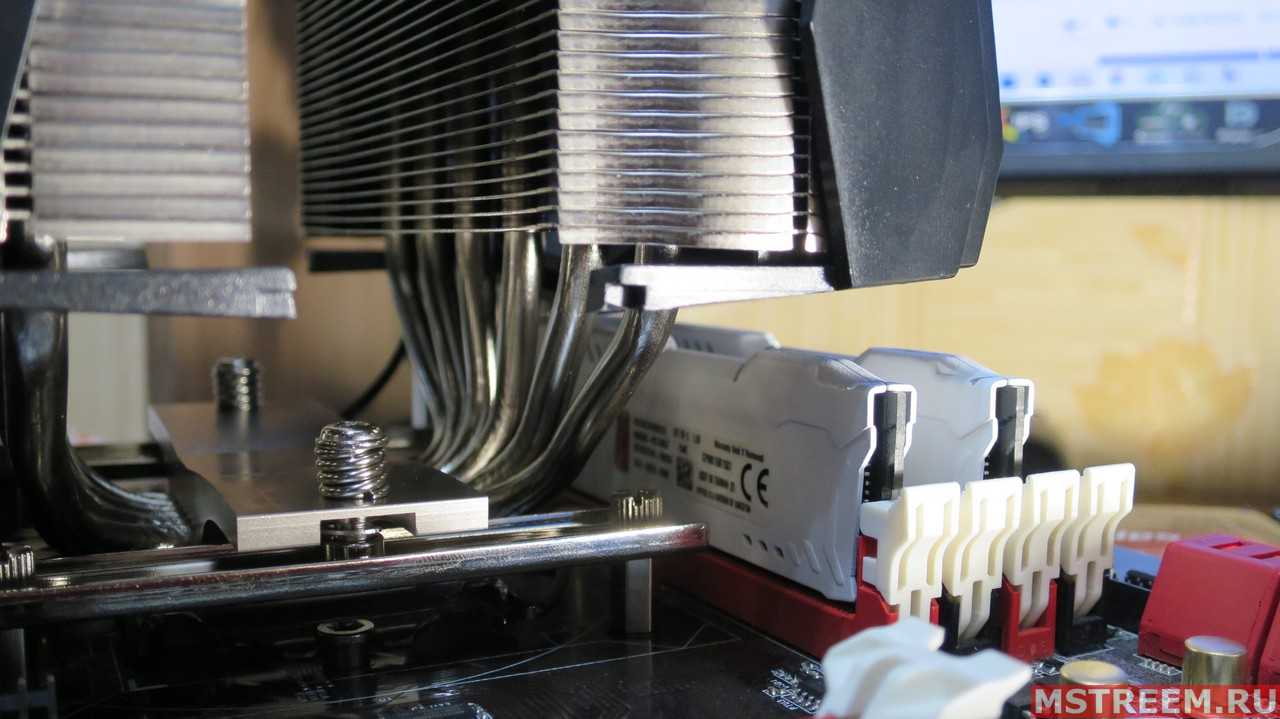 При использовании такой схемы установки, вентилятор на 140 мм расположенный в центре кулера, своим воздушным потоком отлично охлаждает цепи питания процессора, что является дополнительным плюсом.