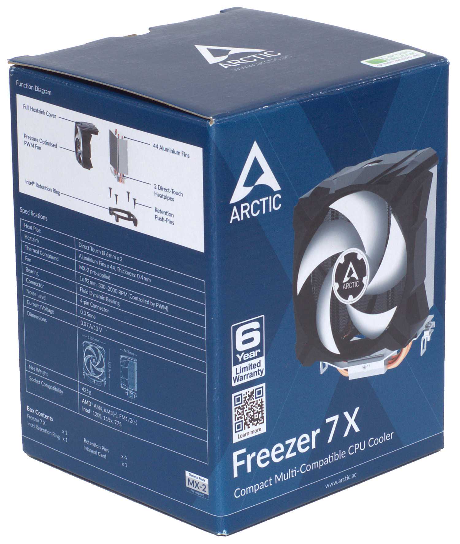 Кулер Arctic Freezer 7X позиционируется как бюджетная модель (рекомендованная стоимость ~17 долларов) и, рассматривая с этой точки зрения, он получился весьма неплохим. Кулер стильно смотрится, а его компактные размеры обеспечивают совместимость практически с любыми материнскими платами и Mid-Tower корпусами. Он обладает достаточной эффективностью охлаждения и совместим с платформами AMD AM3(+)/AM4/FM1/FM2(+) и Intel LGA775/115x/1200.
