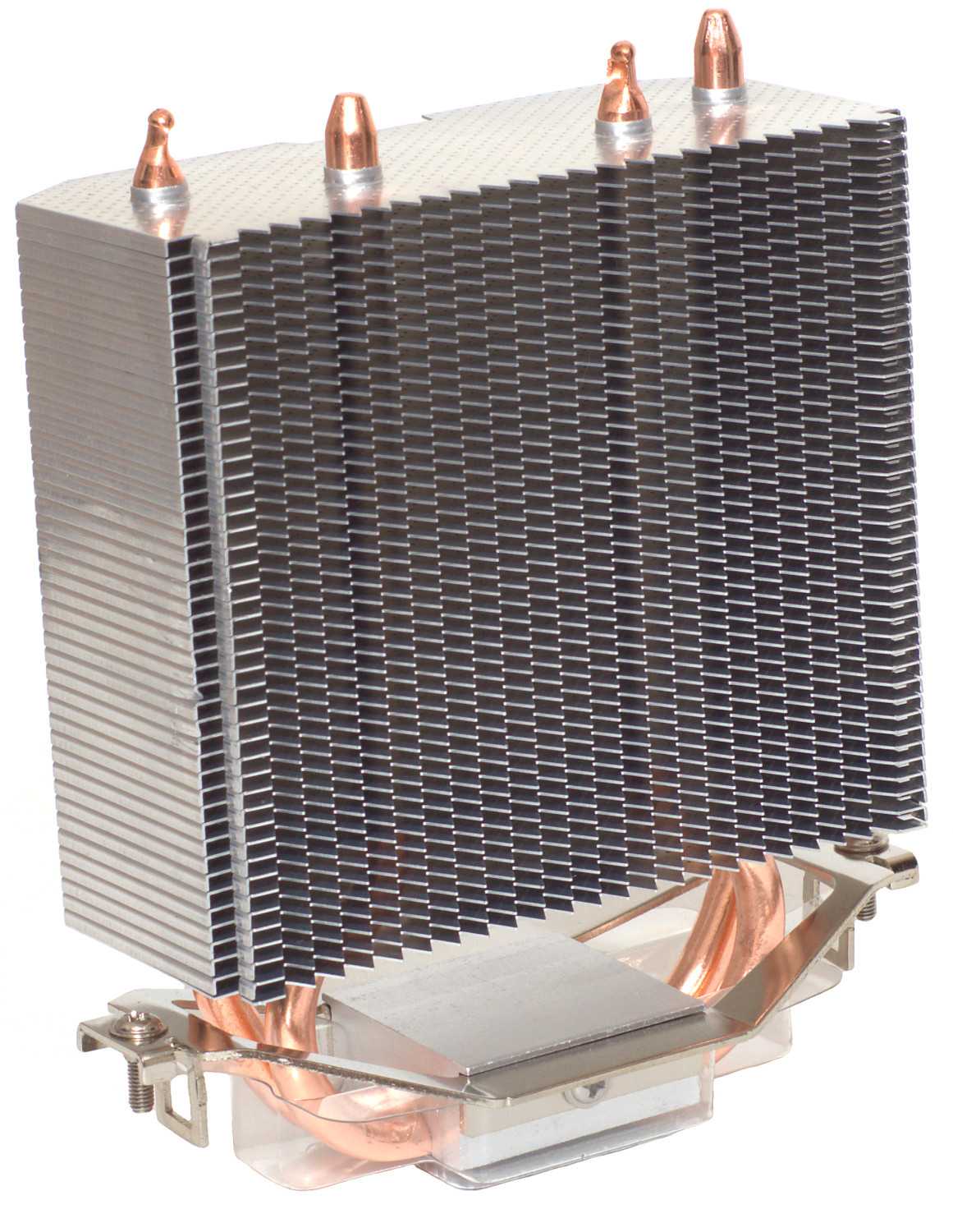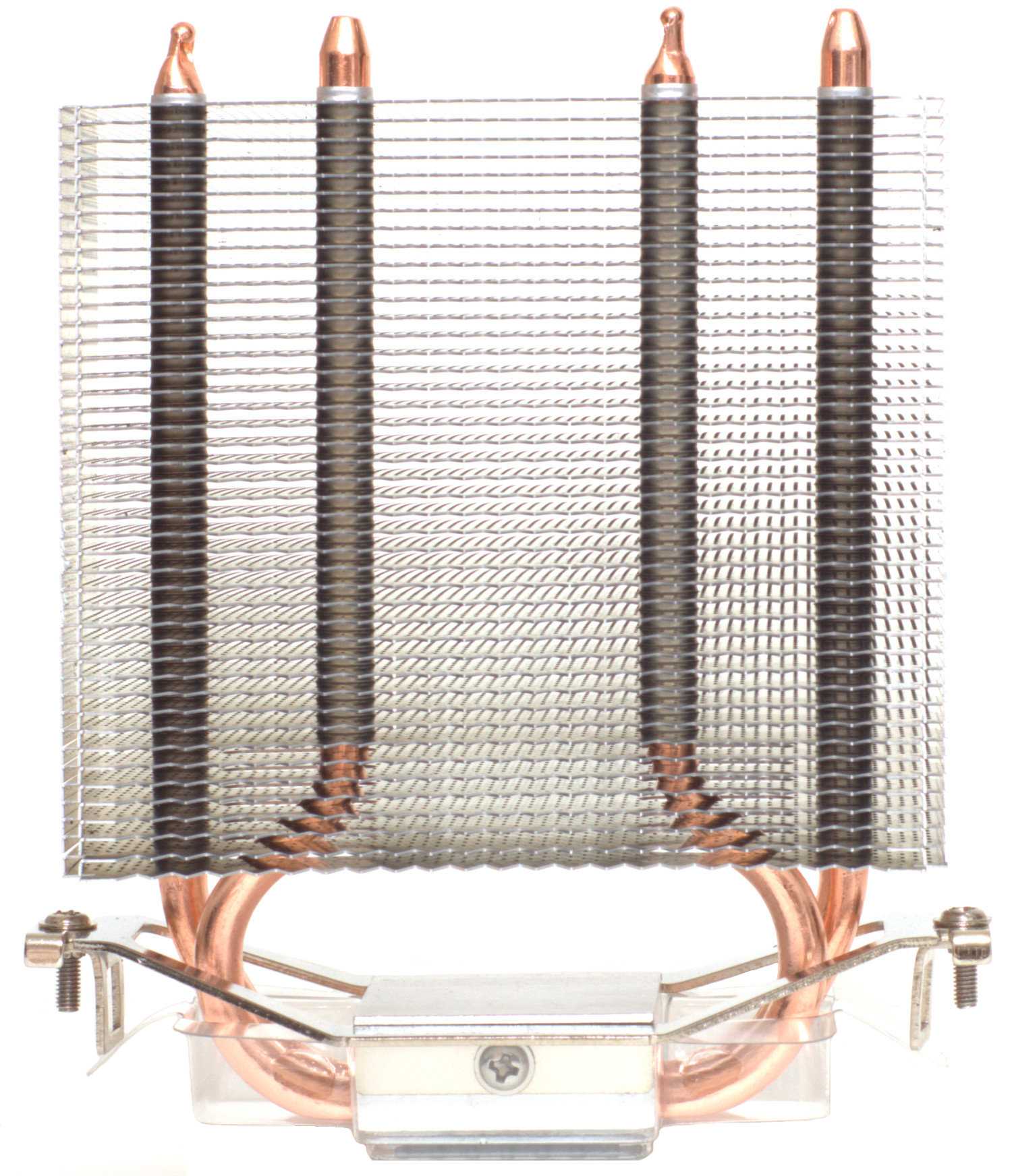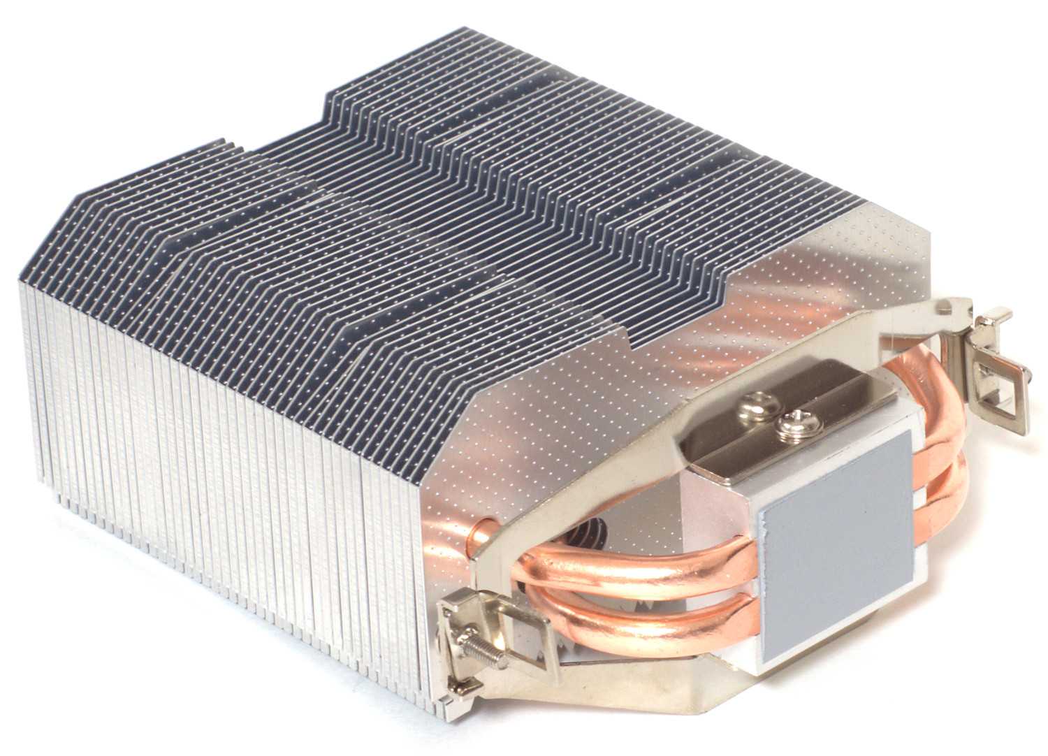 В целом конструкция радиатора простая – две U-образные 6 мм медные тепловые трубки, с которыми контактируют 44 алюминиевые пластины. Такое количество пластин позволяет получить неплохую площадь рассеивания, но этим дело не ограничилось…