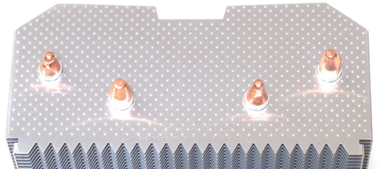 Для повышения эффективности охлаждения пластины имеют микрорельеф, создающий турбулентность воздушного потока, а в сочетании с передними «режущими зубьями» это позволяет обеспечить приемлемый уровень шума.