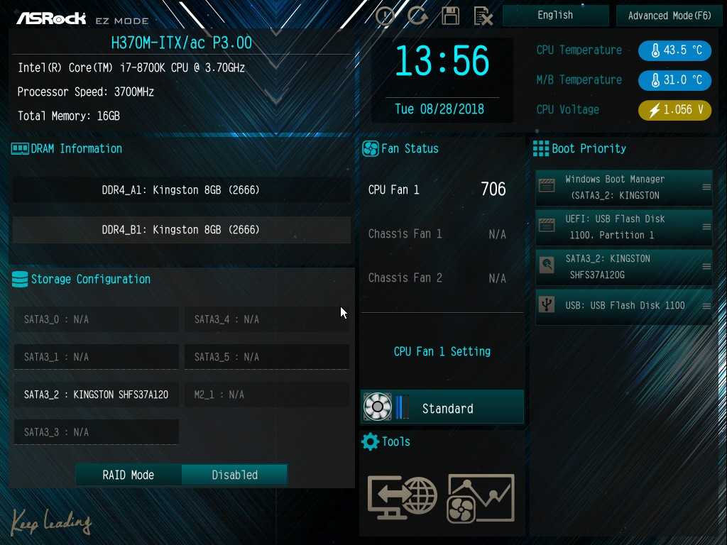 Для ASRock H370M-ITX/ac используется уже знакомая нам графическая UEFI. Оболочка имеет два режима.