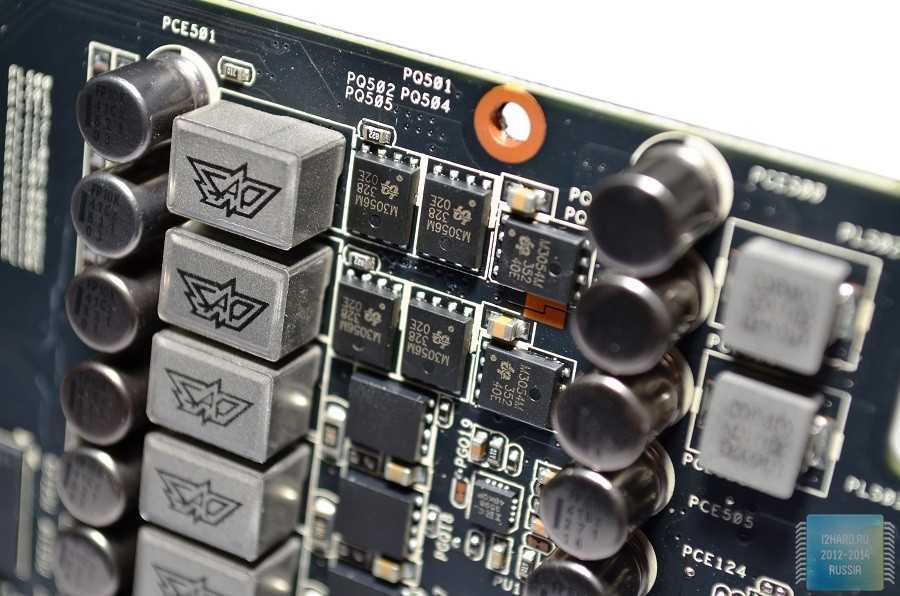 На двенадцать фаз GPU отведено шесть микросхем Texas Instruments 87350D.