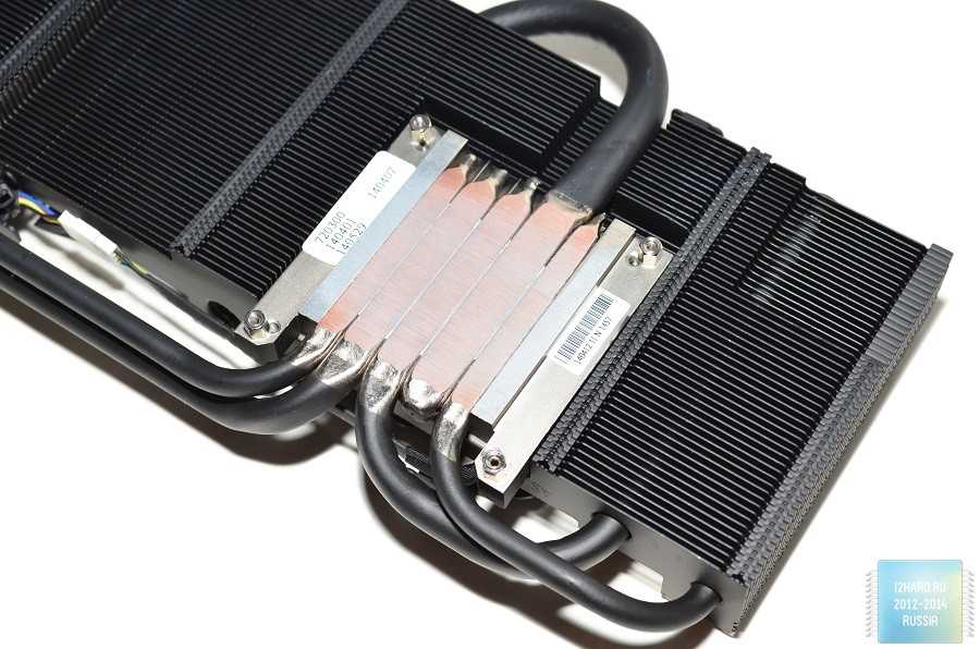 Конструктивно радиатор кулера представляет собой одну цельную секцию с ребрами разного размера. Согласно фирменной технологии Direct CU II, тепловые трубки напрямую контактируют с поверхностью GPU. Преимущество такого метода очевидно — более быстрый отвод тепла от графического процессора.