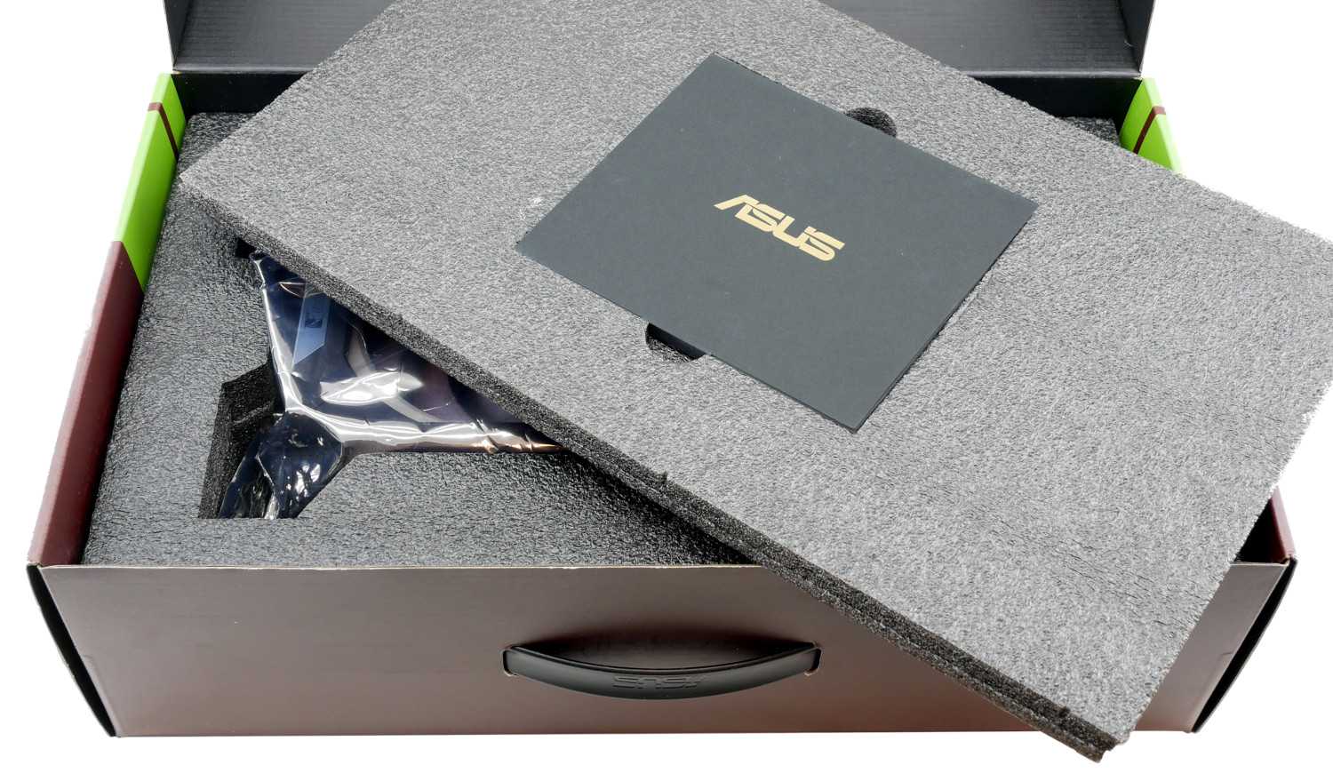 ASUS GeForce RTX 3070 Noctua Edition продается в удобной упаковке-чемоданчике с ручкой для транспортировки. Полиграфия коробки выполнена в фирменном бежевом стиле компании Noctua, угадывающимся с «трех нот». Упаковка большая и тяжелая, будьте готовы для несения весомого груза.