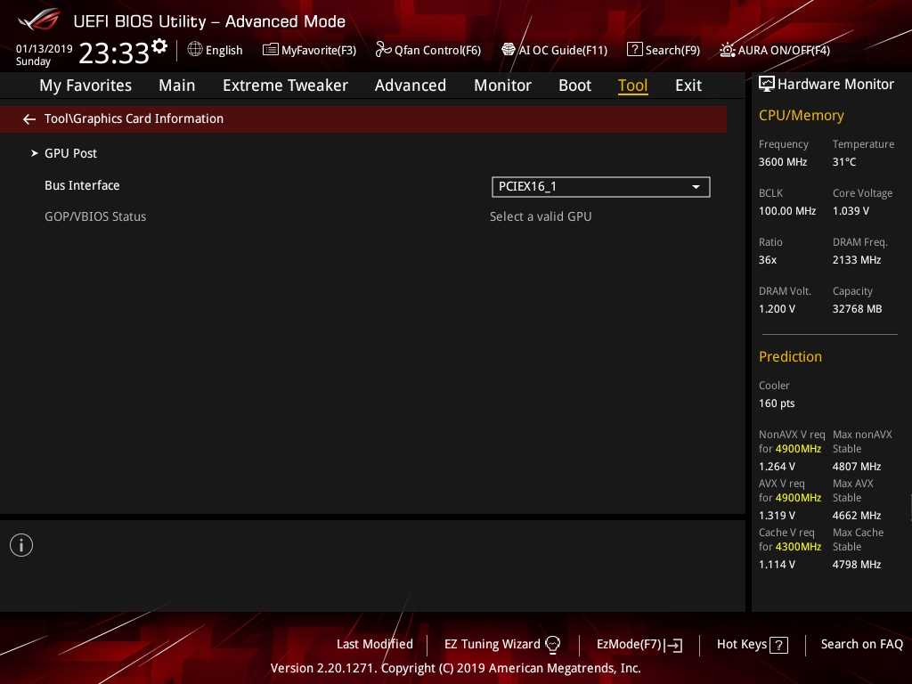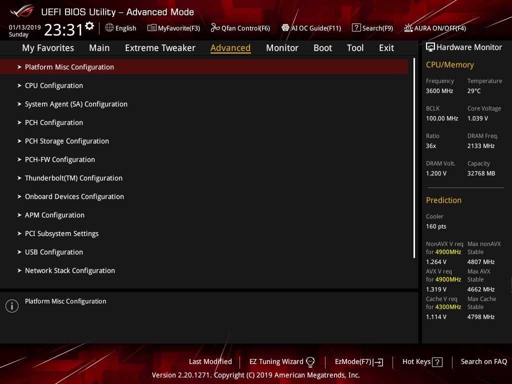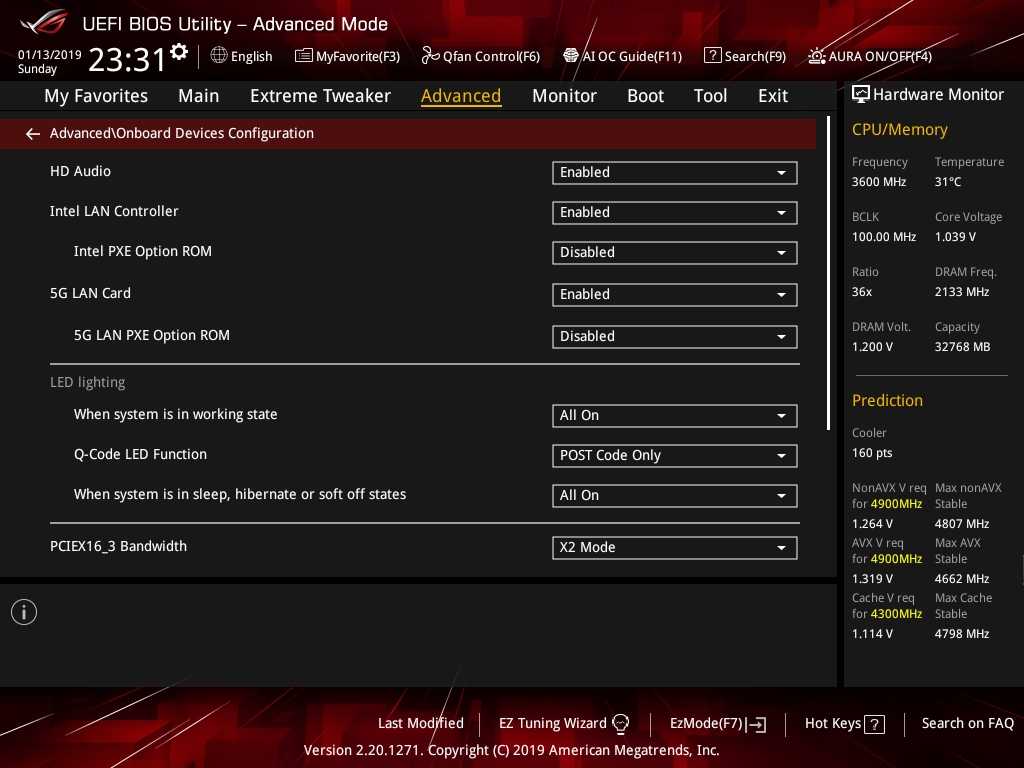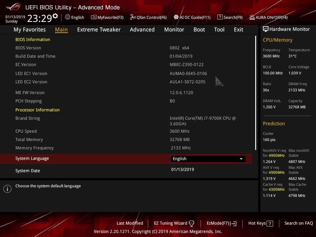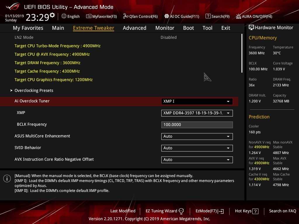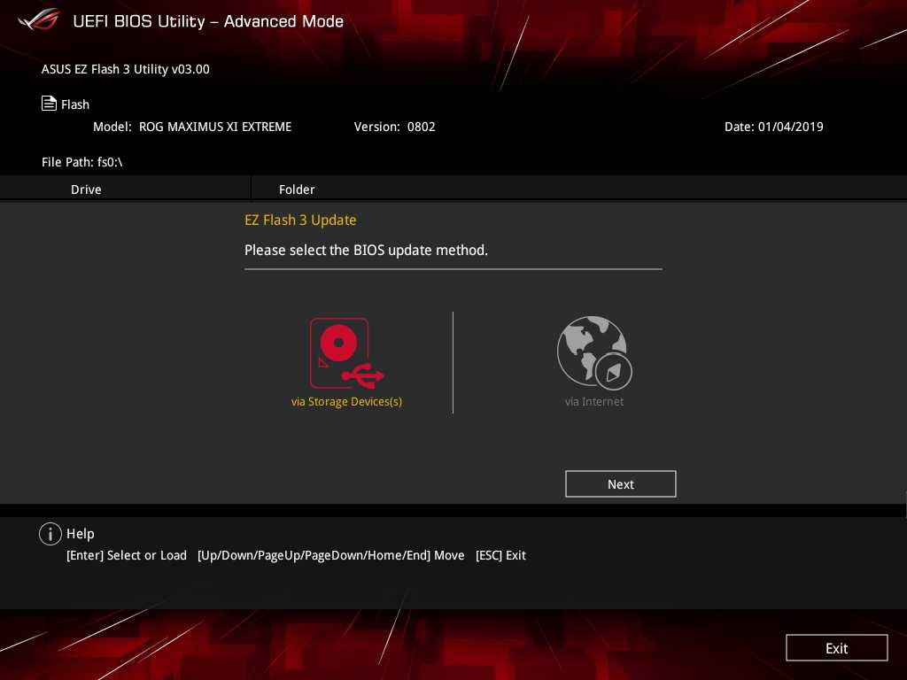 Настройки BIOS у материнской платы ROG Maximus XI Extreme разделены на два интерфейса — EZ Mode и Advanced Mode. Для получения базовой информации о системе и главных компонентов пользователя будет достаточно EZ Mode. Но, чтобы получить доступ ко всем настройкам ROG Maximus XI Extreme, нужно будет переключить BIOS материнской платы клавишей F7 на Advanced Mode.