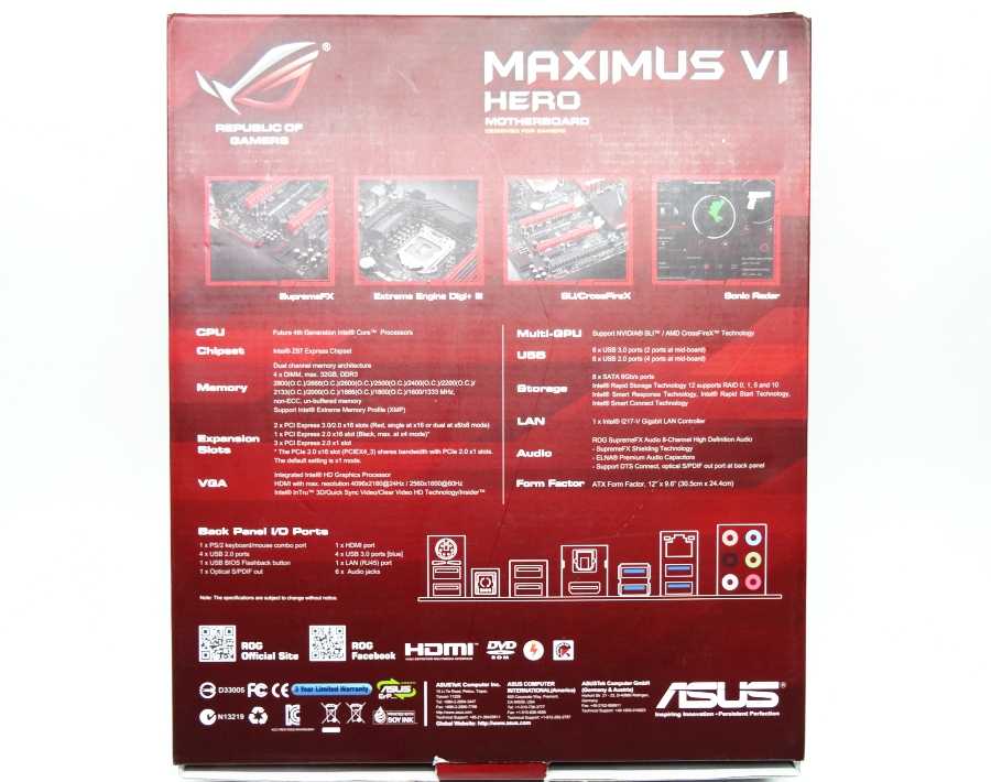 Вместе с ASUS Maximus VI Hero пользователь получит: