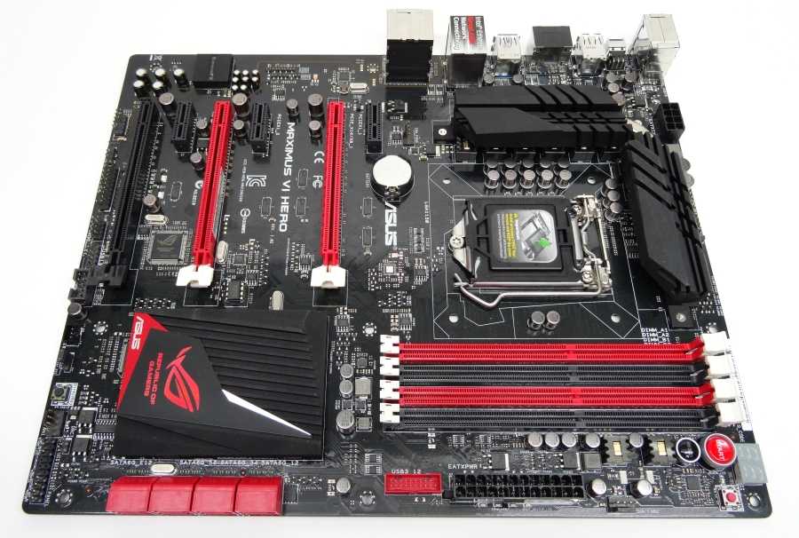 Внешнее оформление Maximus VI Hero выполнено в уже знакомом нам стиле. Сама плата выкрашена в черный цвет, некоторые пластиковые элементы на плате в красный цвет. Таким сочетанием цветов компания ASUS уже приучила пользователей сразу узнавать в девайсе принадлежность к серии «Republic of Gamers». Силовые элементы питания возле процессора оснащены массивными радиаторами, которые фиксируются с обратной стороны платы дополнительными пластинами жесткости.
