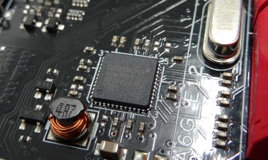 Как известно, чипсет Z87 поддерживает только 6 портов SATA-3, поэтому дополнительная пара портов SATA-3 реализована с помощью контроллера Asmedia ASM 1061.