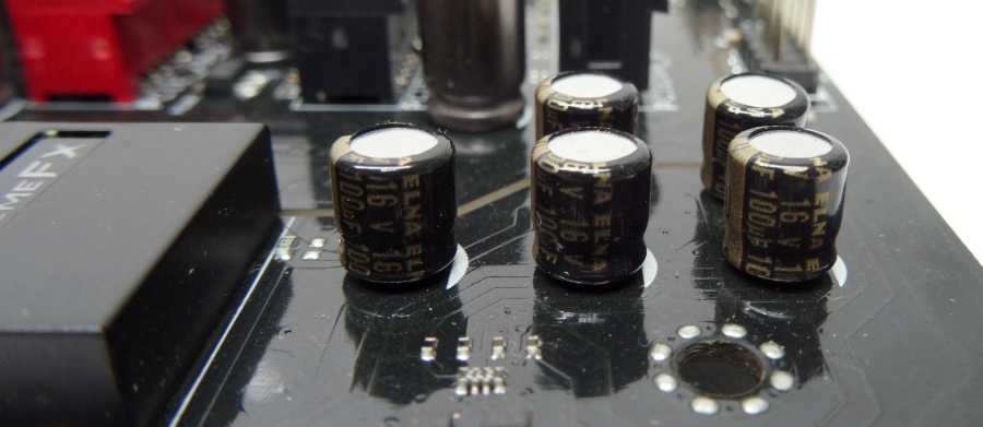 По конденсаторам в области аудио тракта видно, что в производство этой материнской платы вложены немалые средства – здесь присутствуют дорогие и надежные конденсаторы от известного японского производителя ELNA.