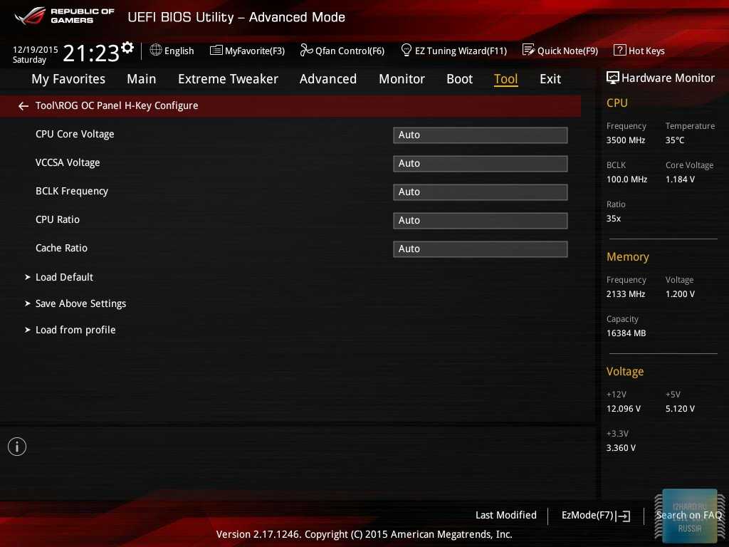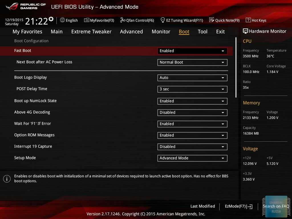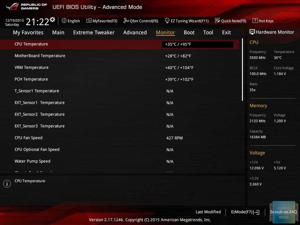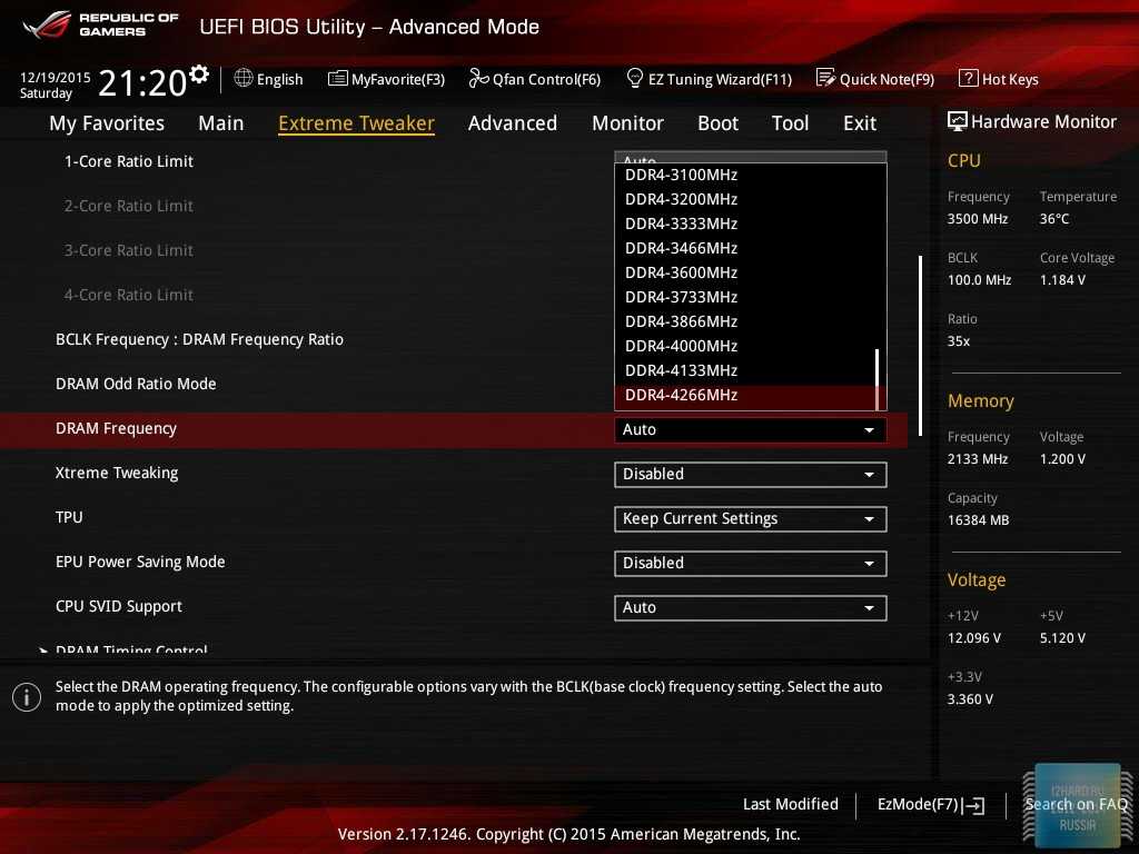 Перед началом тестирования BIOS материнской платы ASUS Maximus VIII Hero был обновлен до последней версии 1202 от 10.11.2015. В качестве тестового процессора был использован Intel Core i5-6600k с тактовой частотой 3.5 ГГц. Настройки в BIOS материнской платы были установлены по умолчанию.
