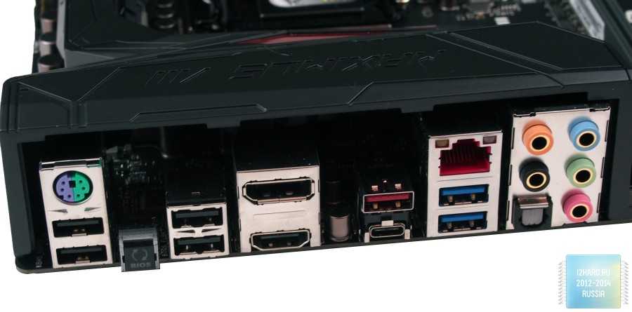Среди разъемов задней панели на ASUS Maximus VIII Hero можно обнаружить: