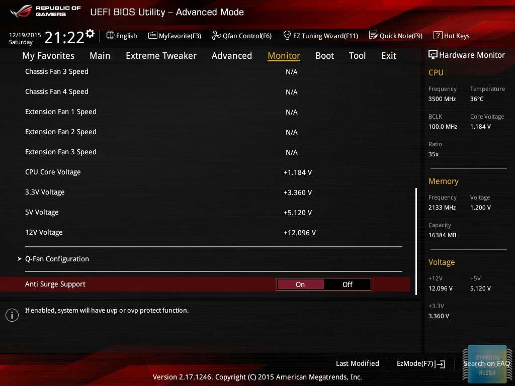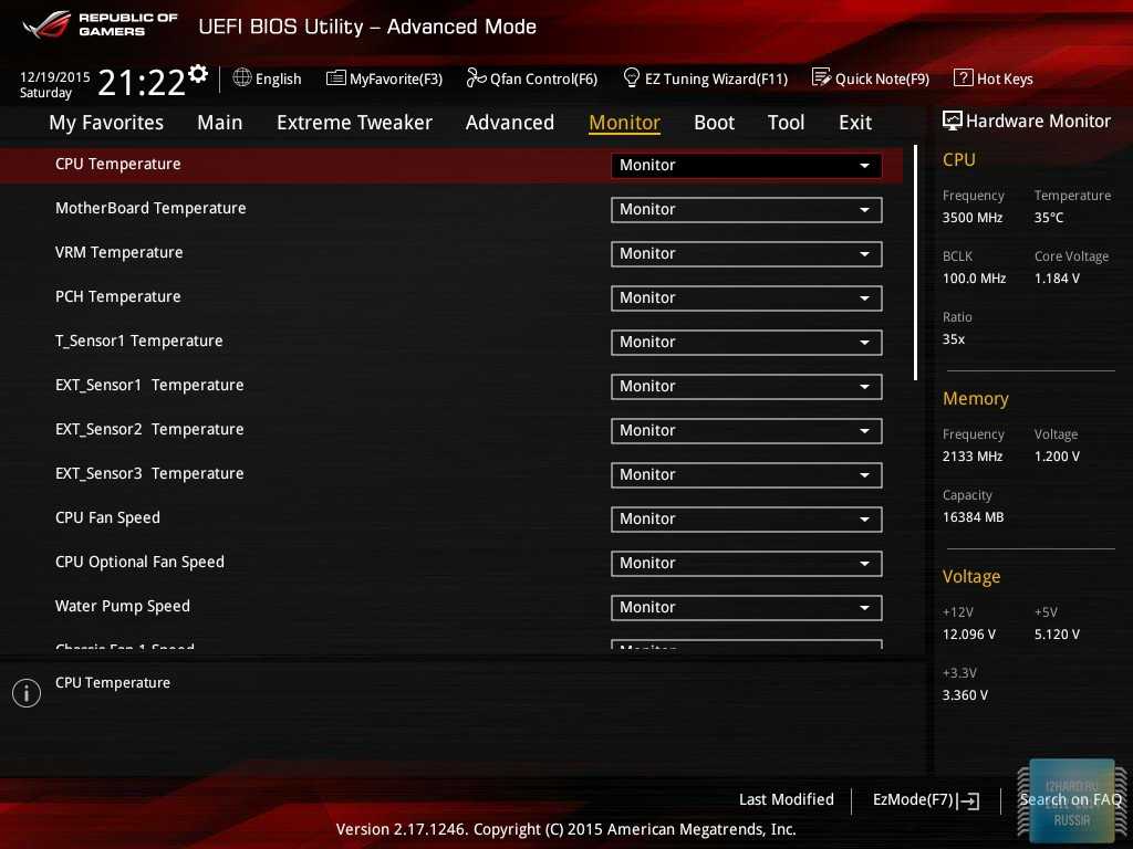 Назначение раздела Monitor понятно из его названия. Здесь собраны настройки по мониторингу температур и напряжений компонентов системы, а также скорости вращения вентиляторов.