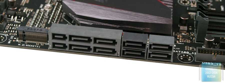А немного справа среди множества других коннекторов внимательный пользователь обнаружит вторую 19-пиновую колодку USB 3.0.