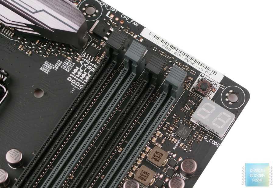 С самого угла ASUS Maximus VIII Hero можно увидеть двухсимвольный POST-индикатор, по сообщениям которого легко догадаться о причинах неработоспособности системы.