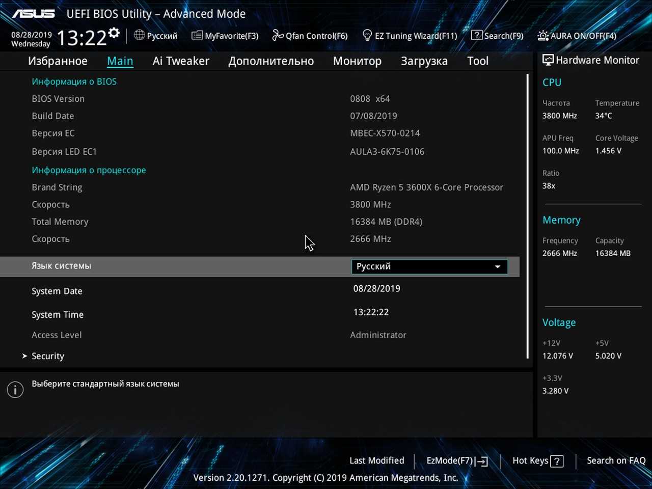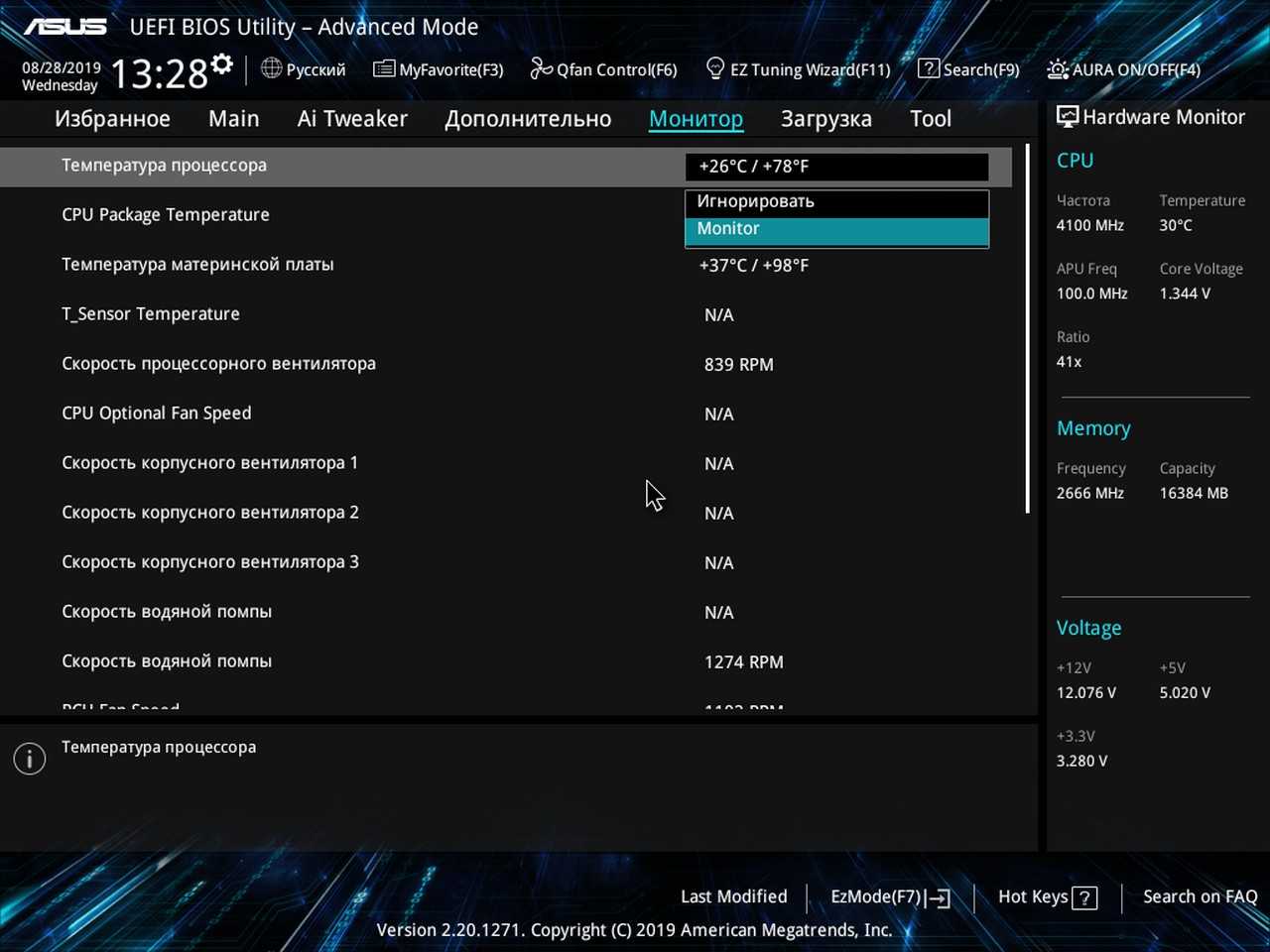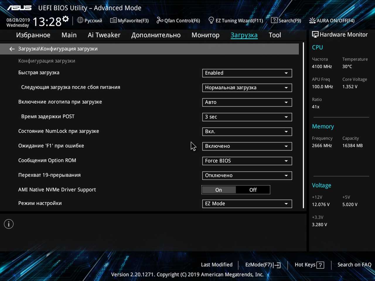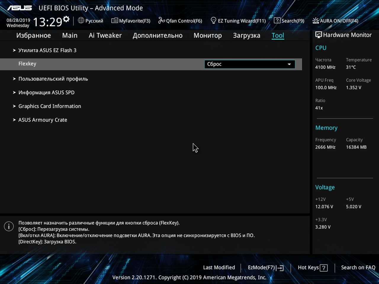 Графический интерфейс UEFI BIOS нам хорошо знаком по обзорам материнских плат ASUS: два варианта на выбор пользователя, простой режим EZ и экспертный Advanced.