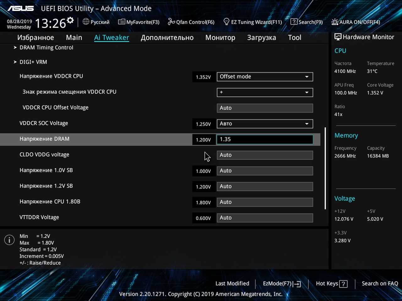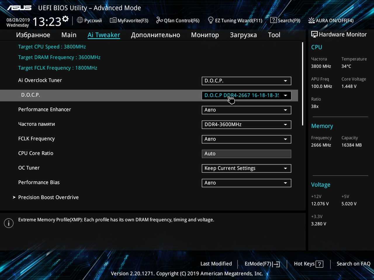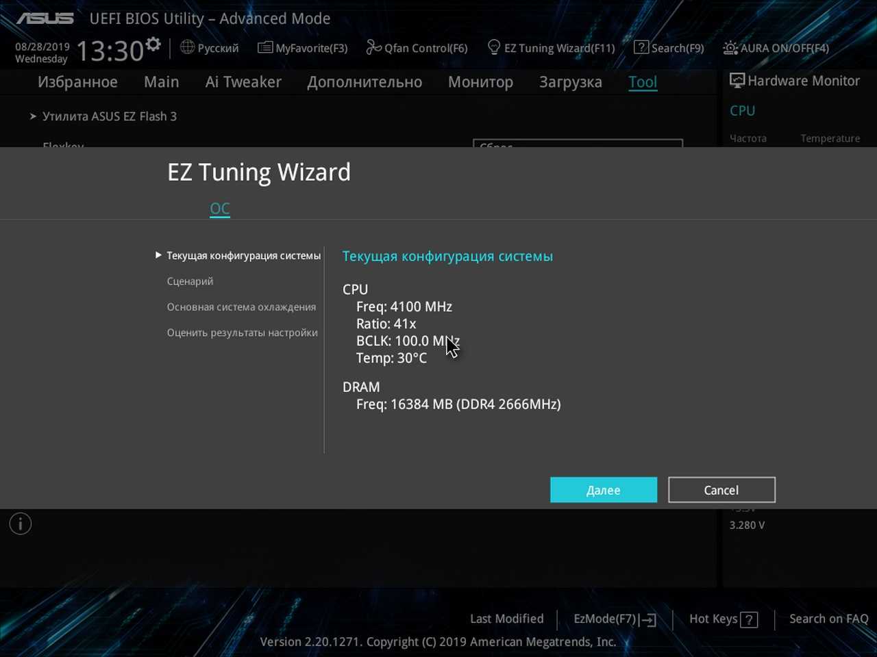 Больше всего нас интересует вкладка «Ai Tweaker». Именно здесь выполняются все настройки по разгону процессора и оперативной памяти, как в ручном режиме, так и в автоматическом D.O.C.P., плюс с помощью утилиты EZ Tuning Wizard.