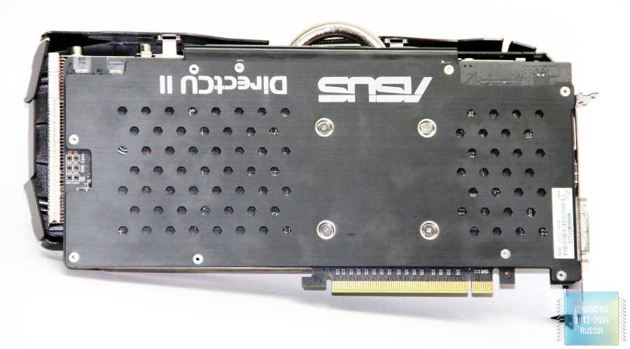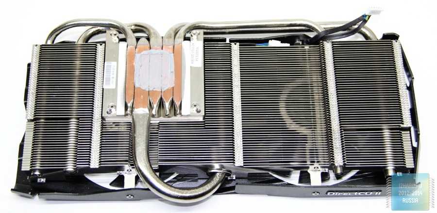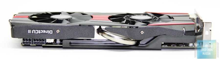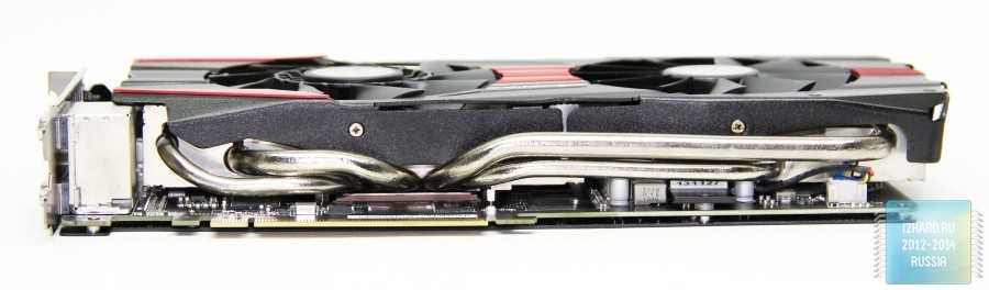 DirectCU II, установленная на видеокарту ASUS Radeon R9 290 OC, является системой охлаждения открытого типа. Использование тепловых трубок немного увеличило видеокарту в высоту.