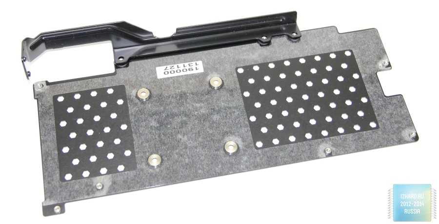 Сама по себе эта платина не охлаждает какие-либо элементы видеокарты, а служит для защиты платы от перегиба и перекручивания. С таким весом системы охлаждения такое инженерное решение вполне оправдано.