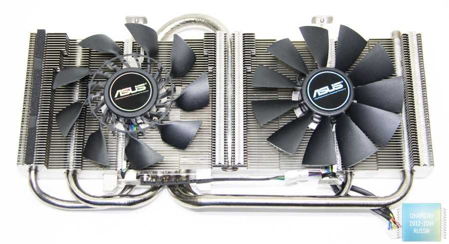 Систему охлаждения DirectCU II, установленную на ASUS Radeon R9 290 OC, условно можно разделить на две составляющие. Это кожух системы охлаждения с двумя вентиляторами, и массивный алюминиевый радиатор с пятью тепловыми трубками.