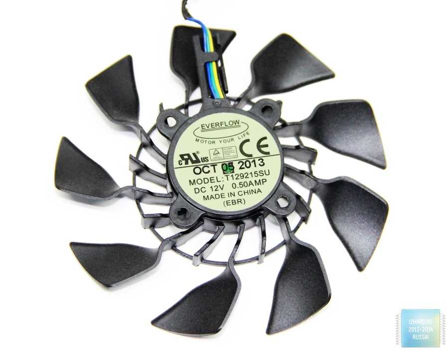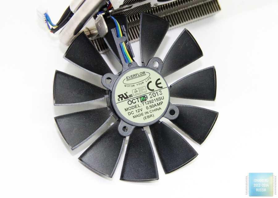 В охлаждении ASUS Radeon R9 290 OC используются два разных вентилятора фирмы Everflow, обычный — справа, и CoolTech-вентилятор слева. Наглядно увидеть аэродинамическую эффективность вентилятора, сделанного по CoolTech Fan технологии, можно по данной ссылке. https://www.youtube.com/watch?v=totFkHQftaI