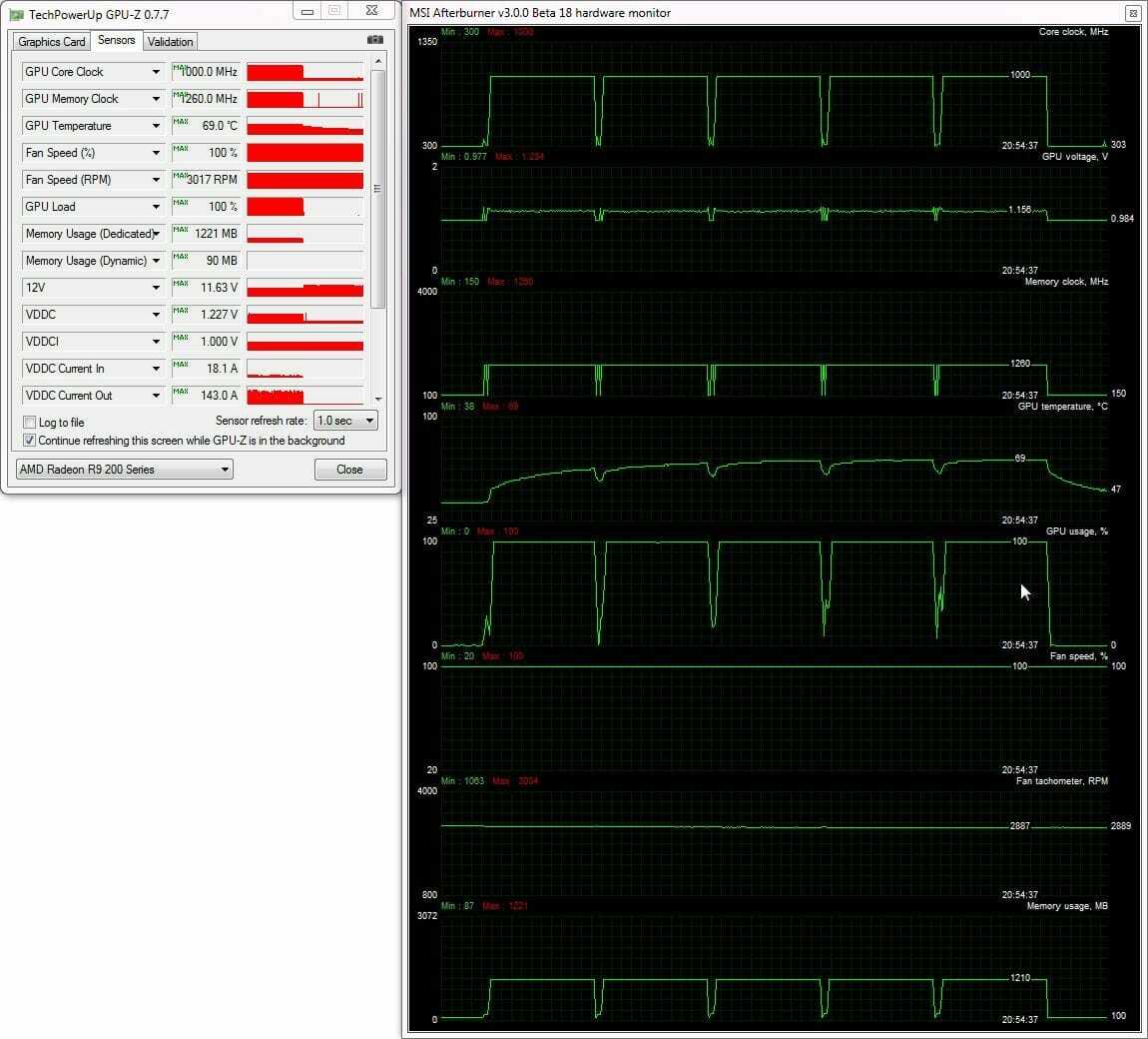 Тактовая частота памяти в процессе экспериментов была увеличена до 6008 МГц (1502 МГц), то есть на 19,2%. Учитывая 512-битовую шину, пропускная способность магистрали между графическим процессором и локальной ОЗУ возросла в этом случае до 384,3 ГБ/c.