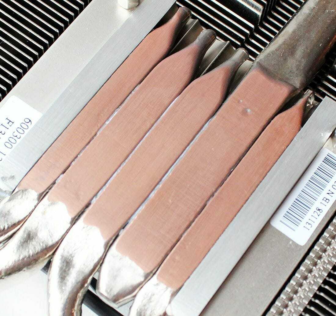 В ASUS Radeon R9 290 OC используется технология прямого контакта. По отпечатку графического ядра видно, что в теплопереносе задействованы только три трубки из пяти.