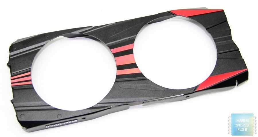 Металлический кожух СО ASUS Radeon R9 290 OC не несет на себе никаких элементов, охлаждающие радиатор вентиляторы закреплены на самом радиаторе системы охлаждения.
