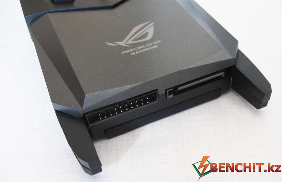 Из прочих эксклюзивов стоит отметить корзину для пятидюймового отсека под OC Panel и кабель ROG Connect. Так как плата оснащена пятью слотами PCIe x16, в ASUS не забыли доложить мостики 3-way и 4-way SLI, а также удлиненные мосты CrossFireX.