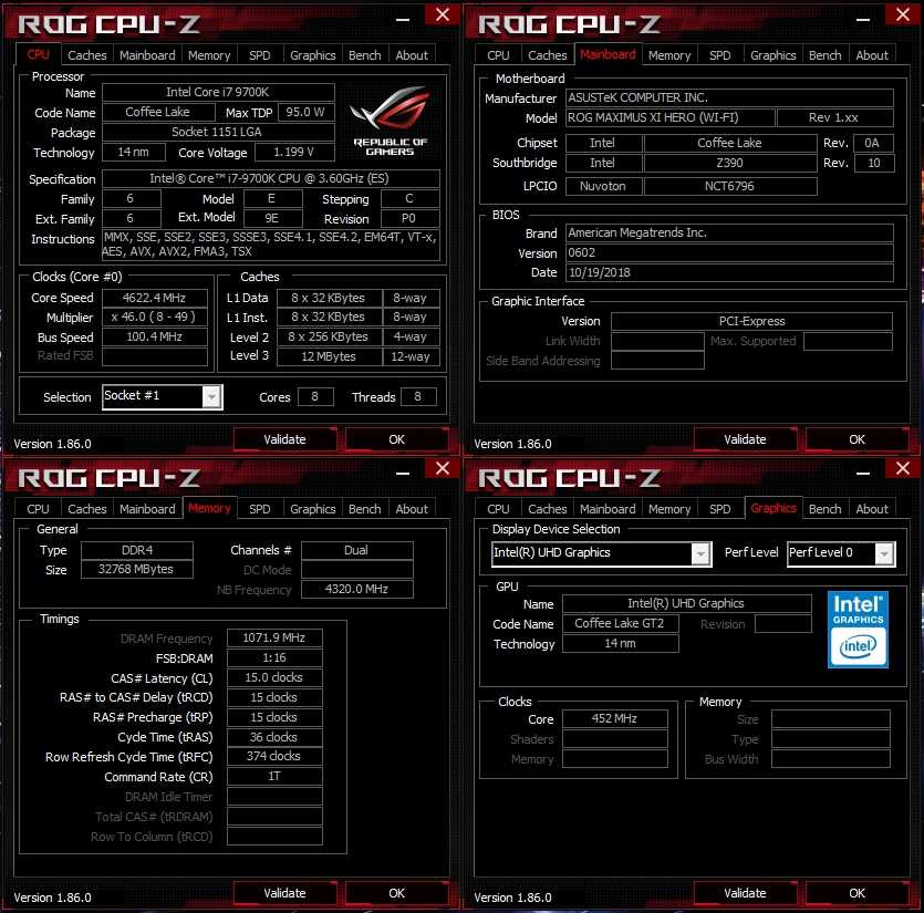 Материнская плата ROG Maximus XI Hero (WI-FI) была протестирована с новым 8-ядерным процессором Intel Core i7-9700k. Выбор на это модель CPU пал не случайно. Хотелось посмотреть, как будет работать тестируемая материнская плата с новыми 8-ядерными моделями, инасколько хорошо она сможет их разгонять.