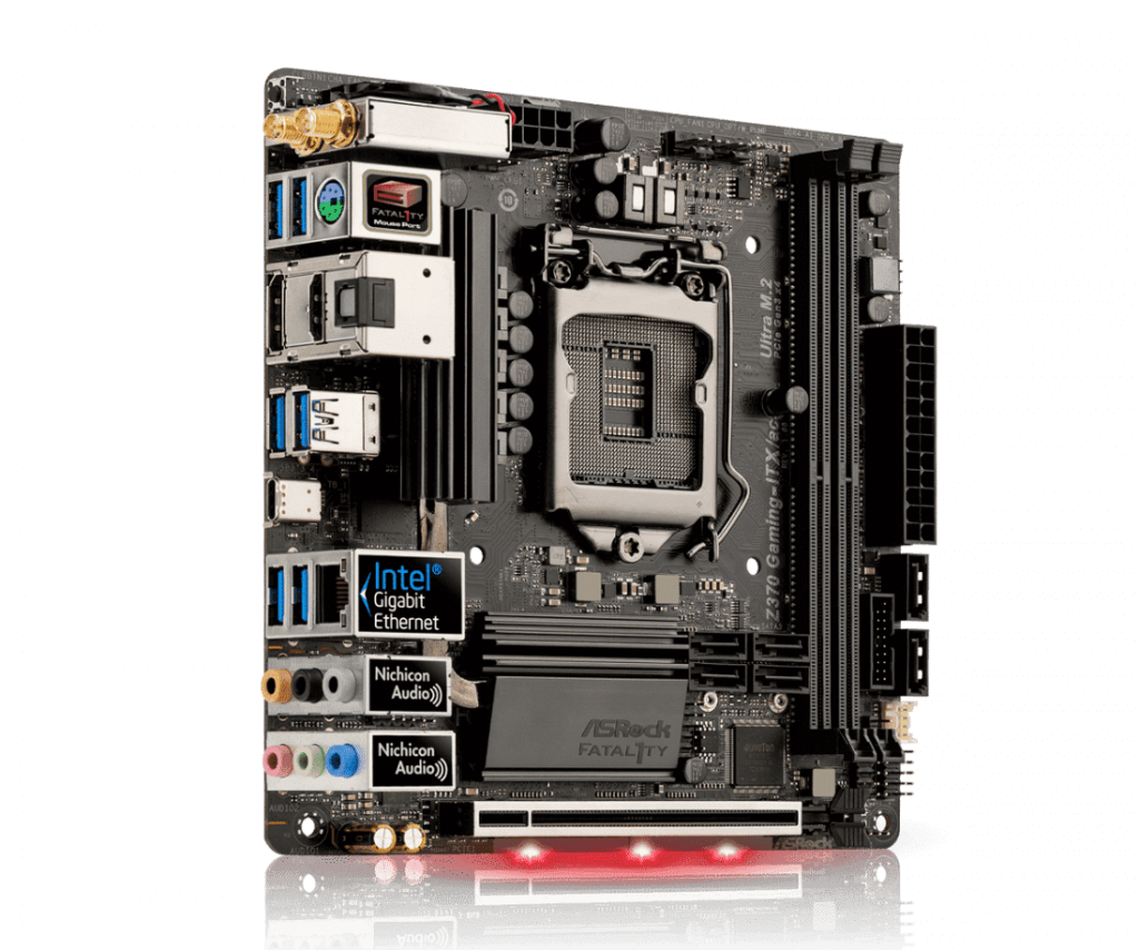 - Asrock Fatal1ty Z370 для игр ITX / AC ($ 180) — наш лучший выбор