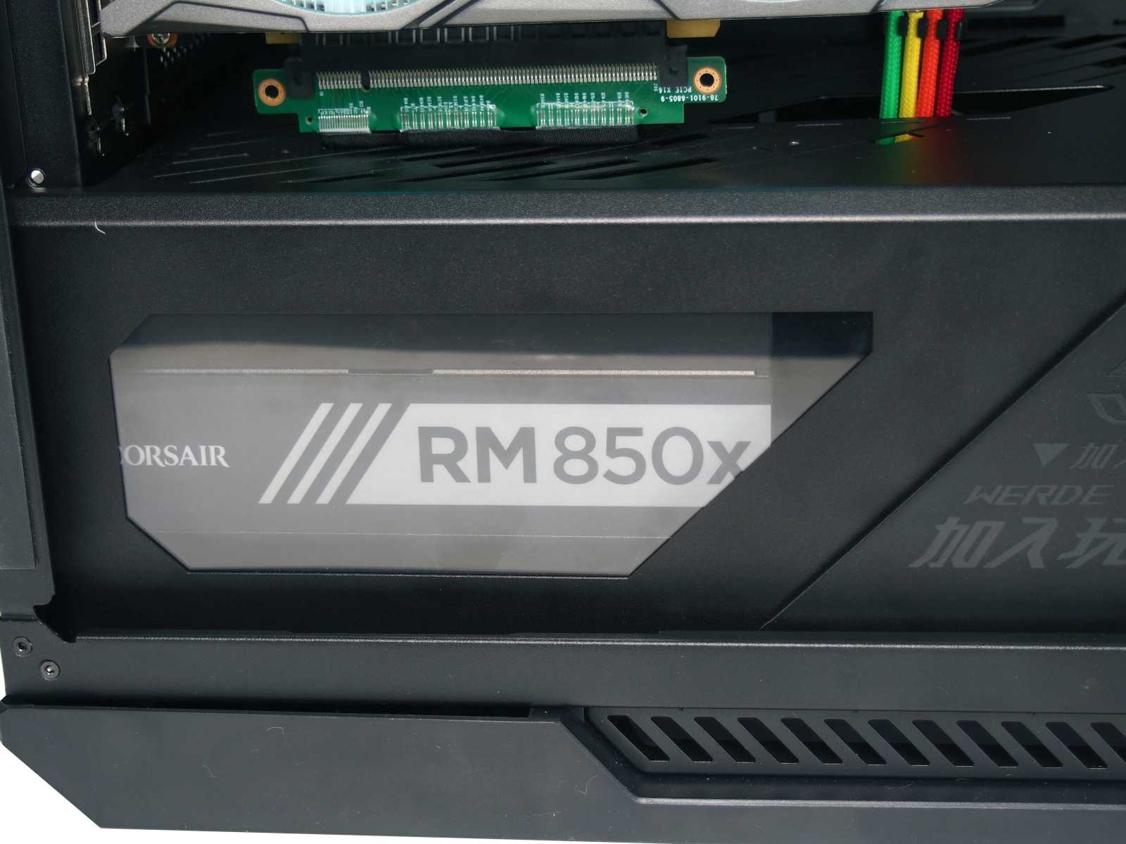 Не лишним в ROG Strix Helios оказалось и окно для блока питания. Хоть наш тестовый Corsair RM850x и не имеет встроенного дисплея, но через окно он отлично просматривался и обозначил себя в системе.