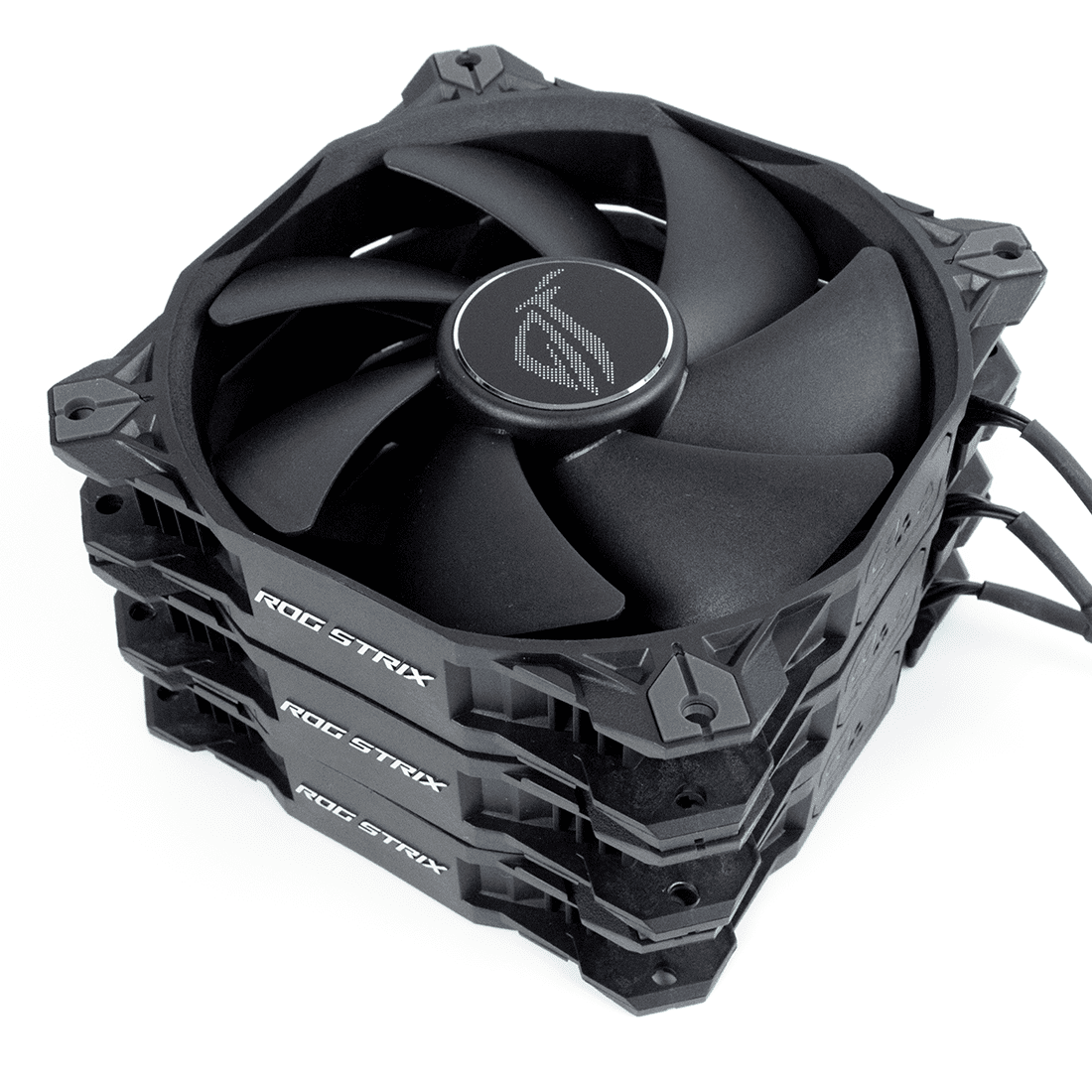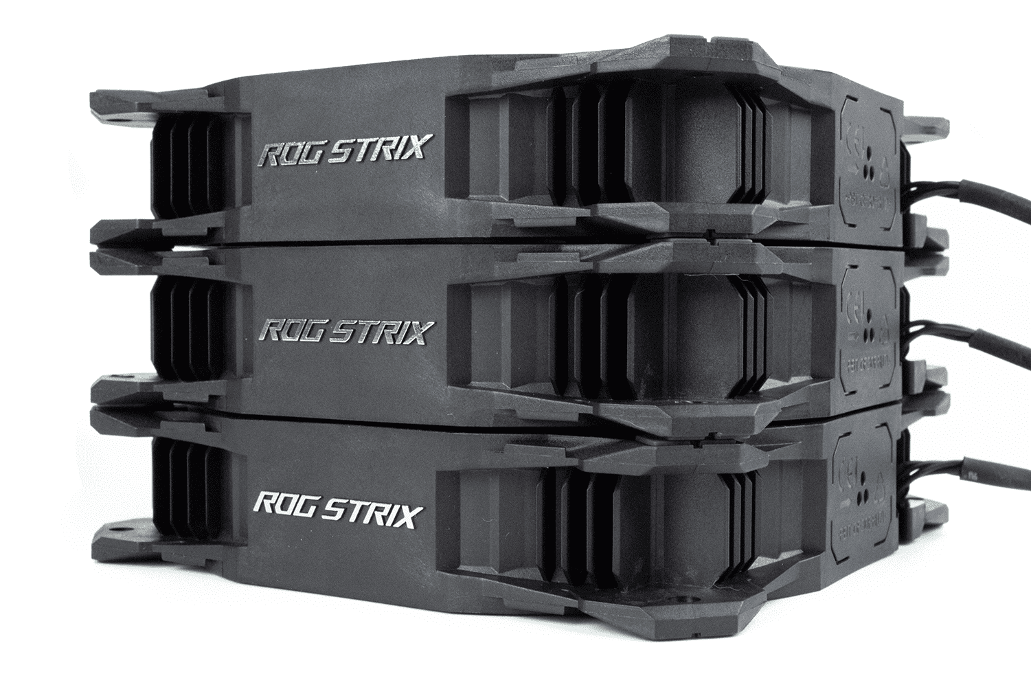 С двух торцов вентиляторов расположились объемные серебристые надписи ROG STRIX.