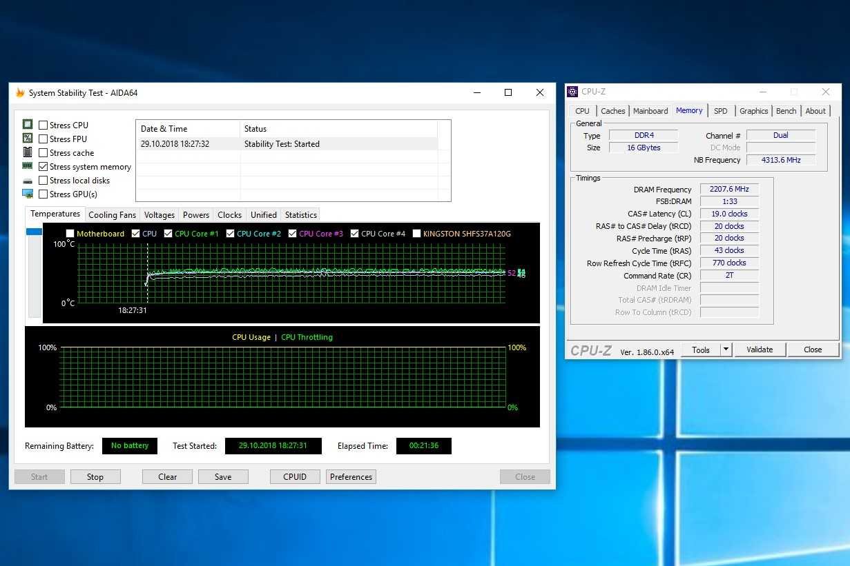 Методом подбора удалось запустить память в режиме DDR4-4500 с таймингами 19-20-20-43 при напряжении питания 1,4 В. Хотя стресс-тесты AIDA64 комплект выдерживал в режиме DDR4-4400.