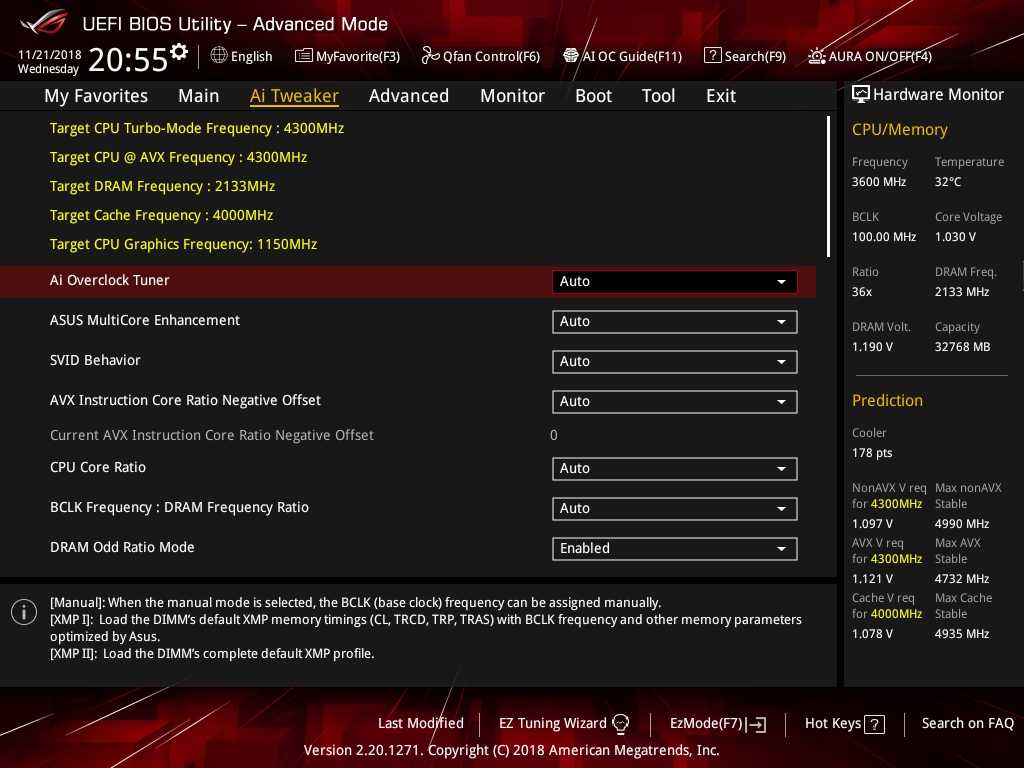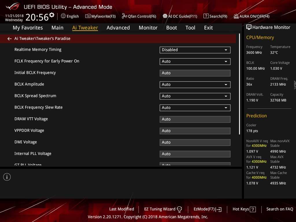 Раздел «Ai Tweaker» по традиции вобрал в себя все настройки для оверклокинга и тонкого тюнинга системы. Данный пункт меню содержит очень много настроек, что характерно для материнских плат ASUS с чипсетами Intel Z-серии.