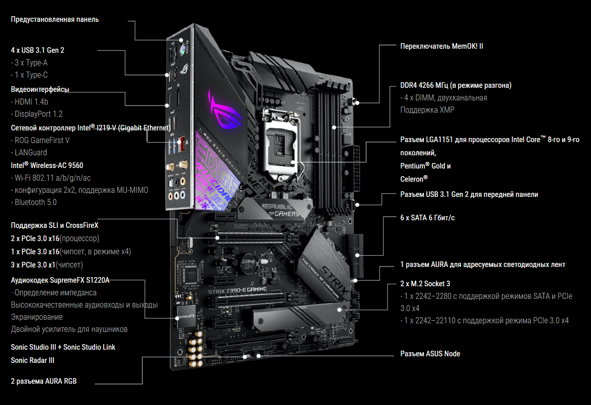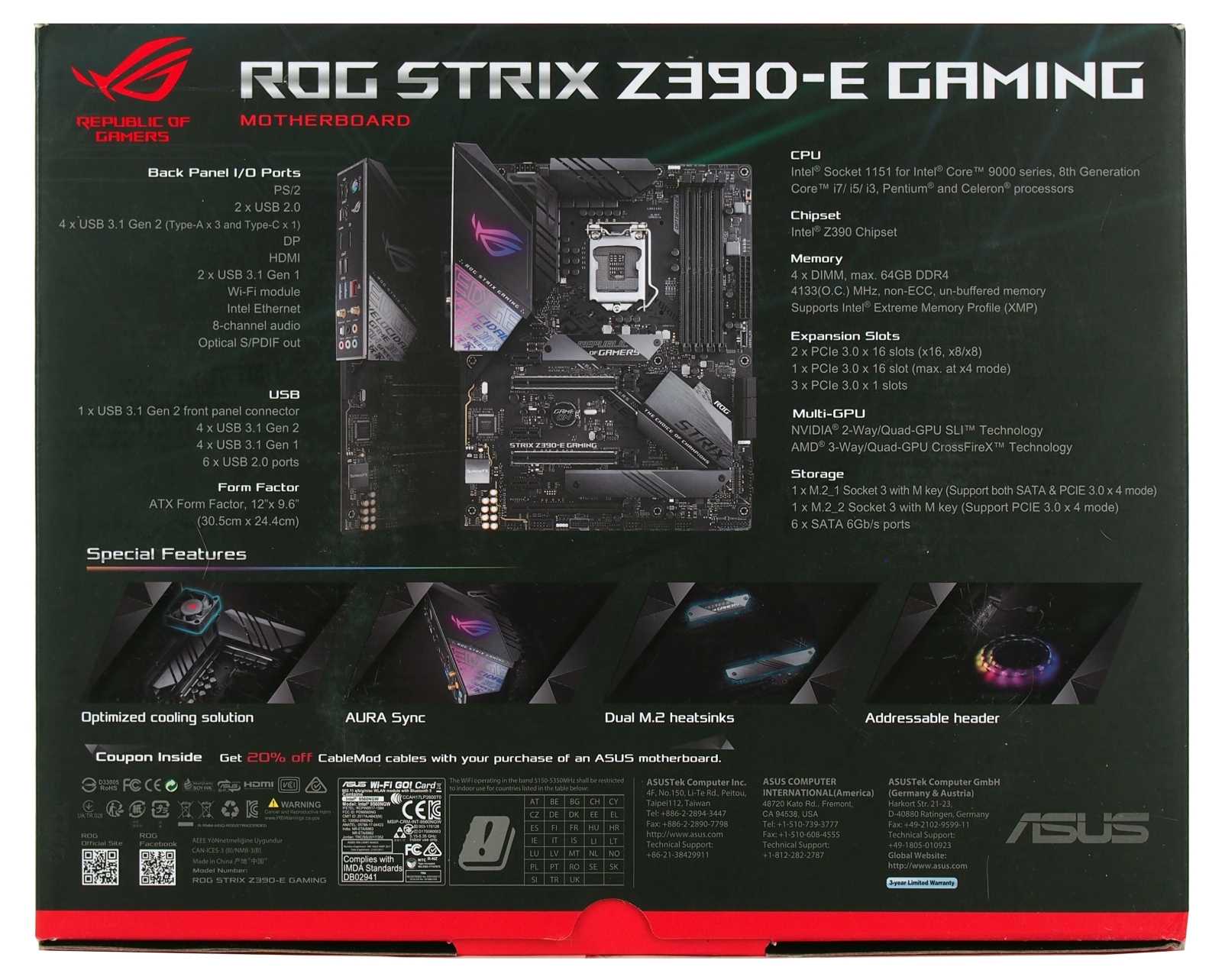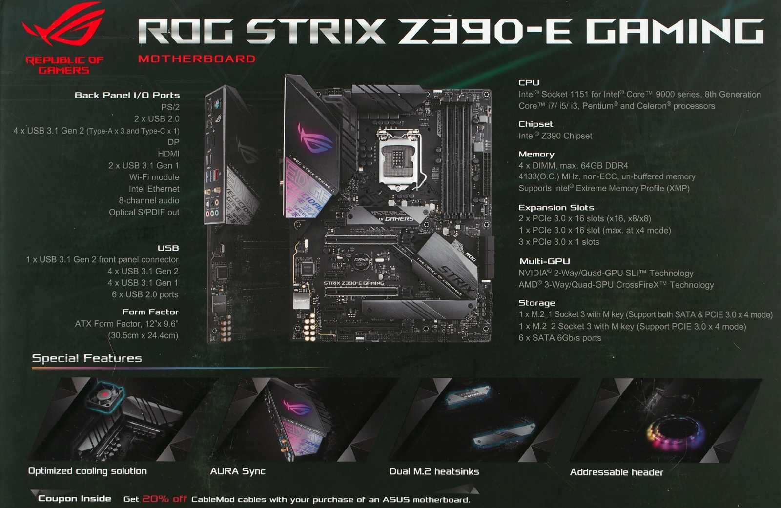 - Материнская плата: ASUS ROG STRIX Z390-E GAMING;