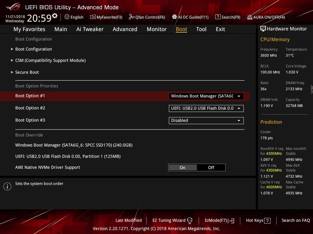 Вкладка «Boot» отвечает за загрузку операционной системы. Здесь можно выбрать загрузочный накопитель по умолчанию, а также настроить порядок и условия загрузки системы.