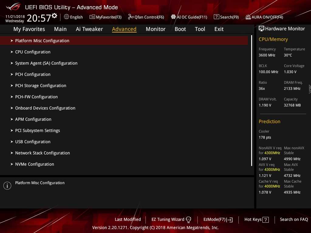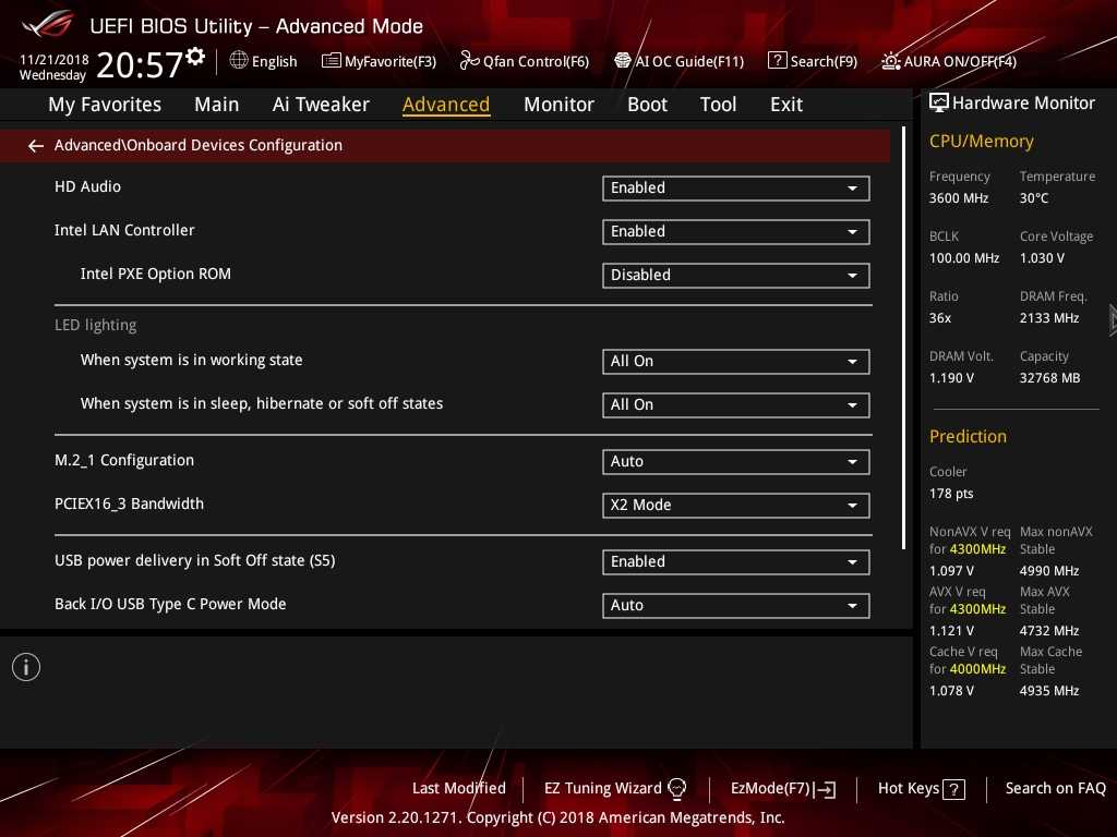 Работа периферии и слотов материнской платы может быть контролируема рядом настроек раздела «Advanced».